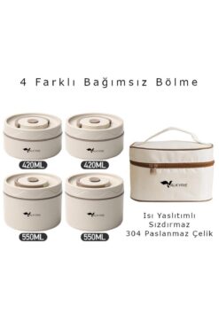 valkyrie 4 Gözlü Paslanmaz Çelik Isı Yalıtımlı Yemek Kabı Seti Çantalı 304 Steel 2x 420ml + 2x 550ml
