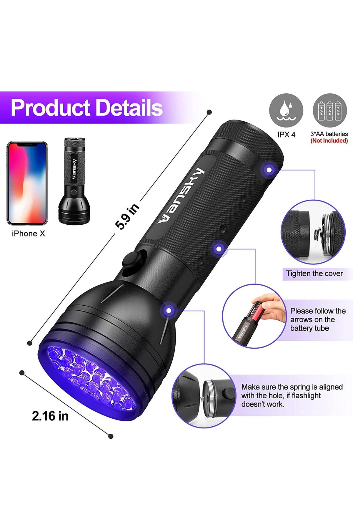 valkyrie 51 LED Mor Işık UV El Feneri Ultraviyole Blacklight