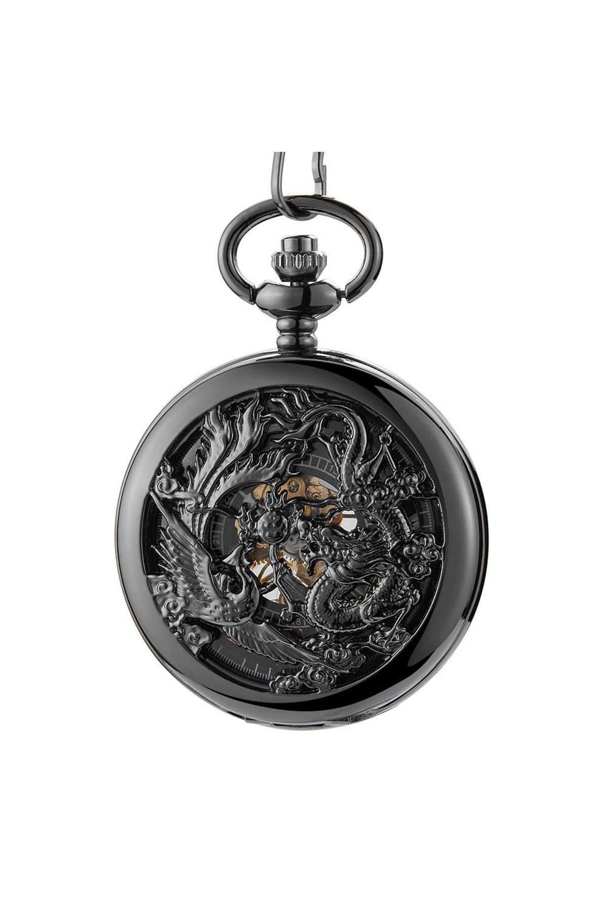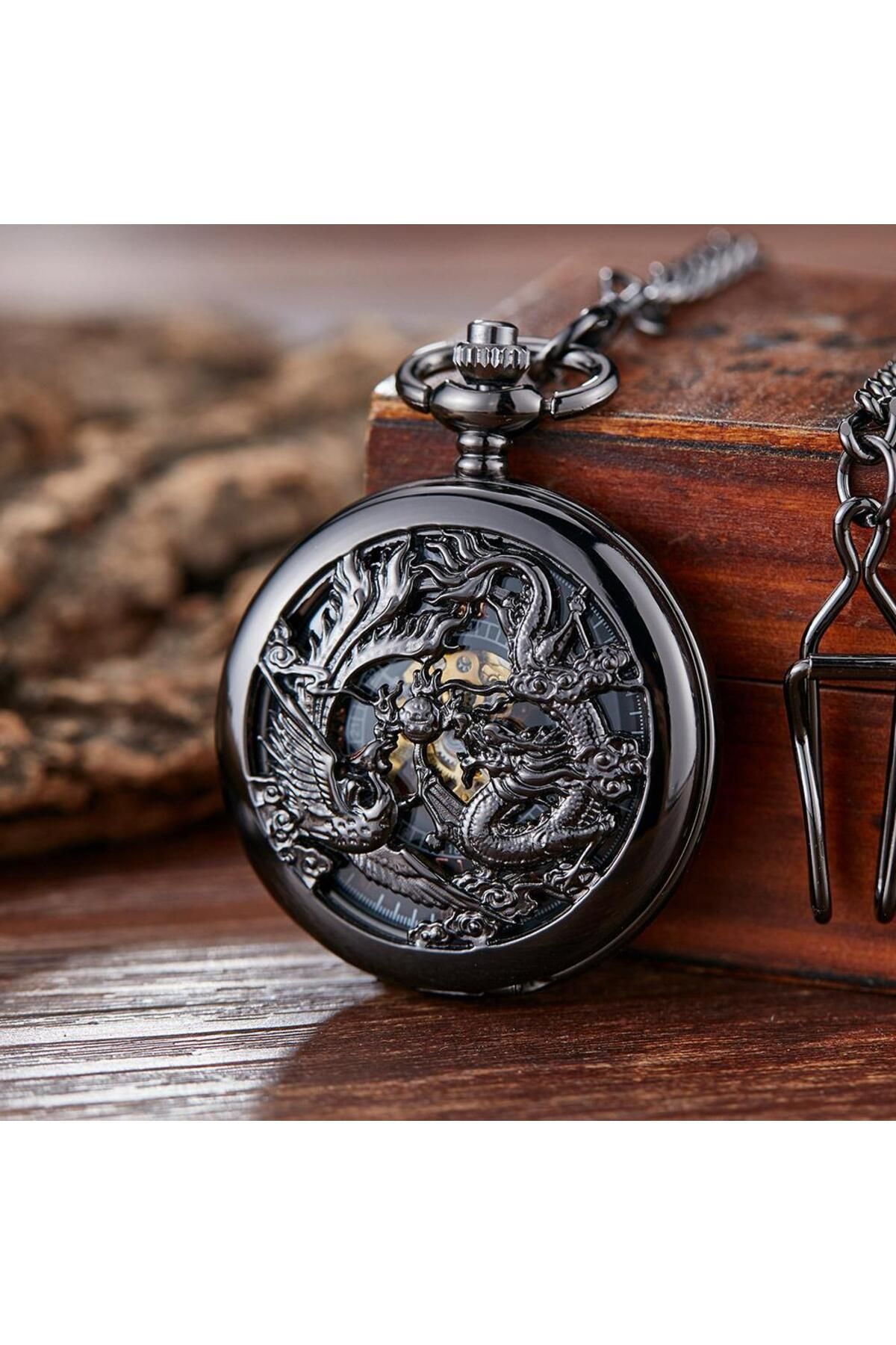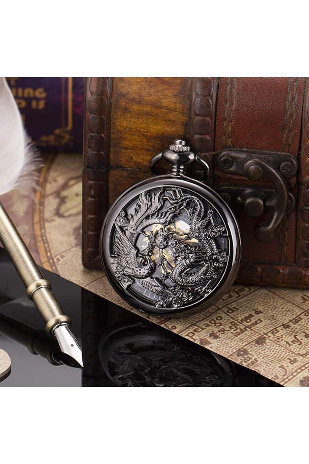 valkyrie Ejderha Motifli Mekanik Iskelet Cep Saati Köstekli Saat Kurmalı Pilsiz