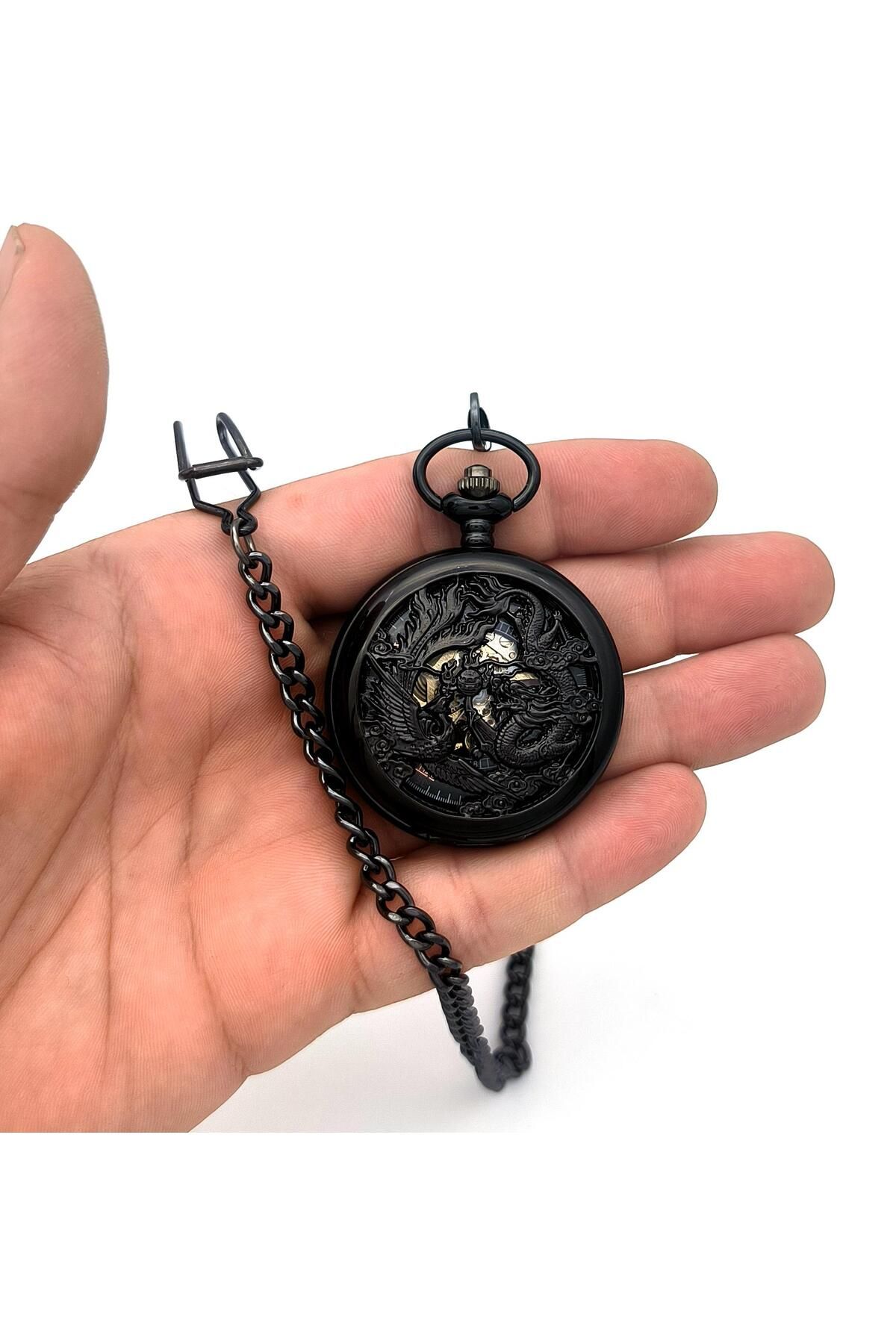 Valkyrie Ejderha Motifli Mekanik İskelet Cep Saati Köstekli Saat Kurmalı Pilsiz Kasa çapı : 46 cm Zincir uzunluğu : 30cm