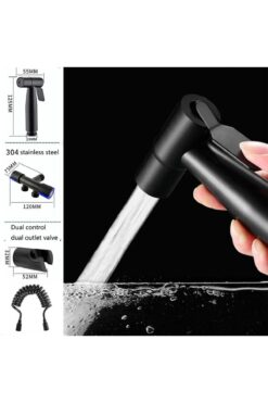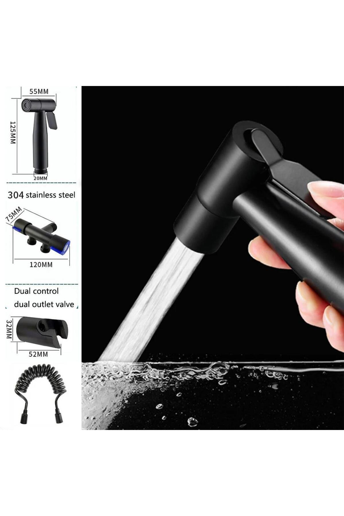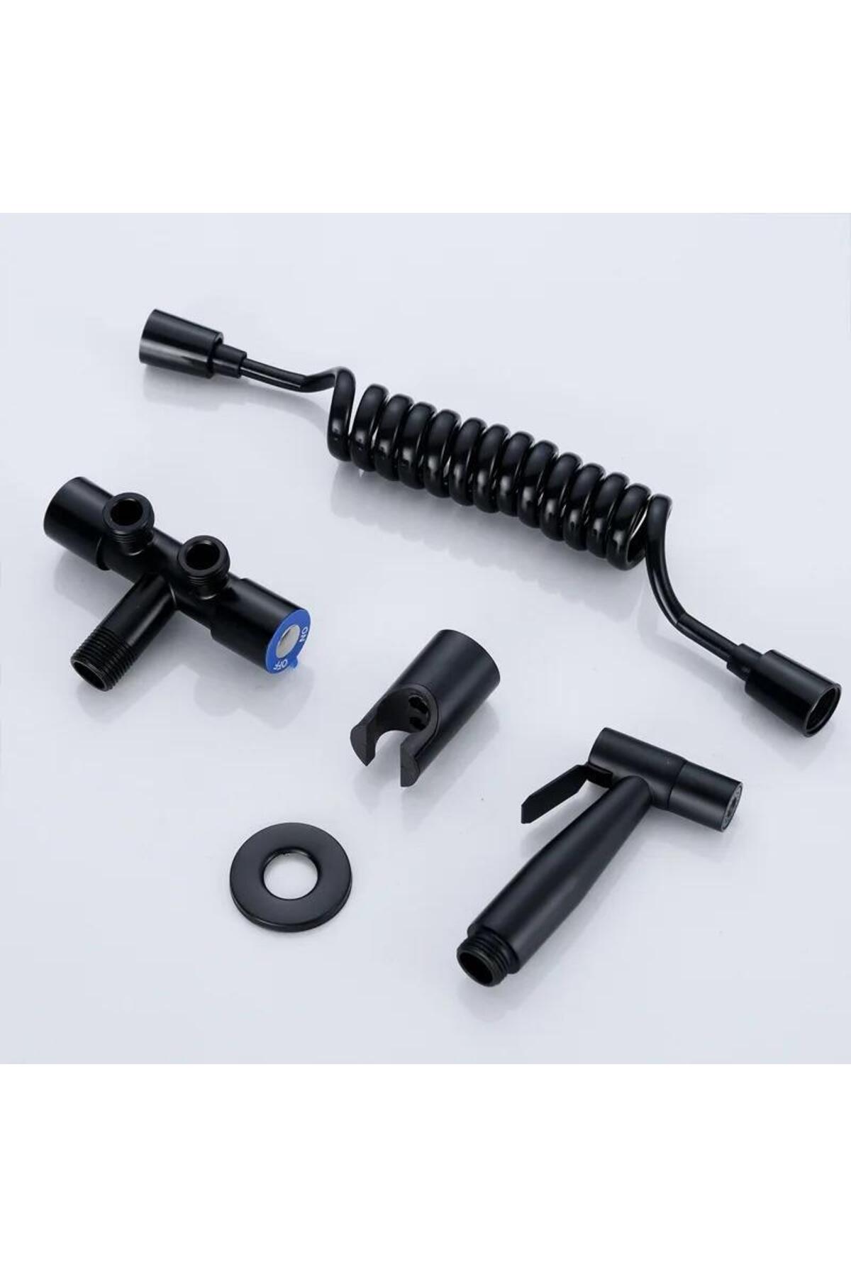valkyrie Paslanmaz Çelik Tuvalet Musluk Bide Seti Kolay Kurulum Kullanım Çift Çıkışlı Siyah Evcil Ha