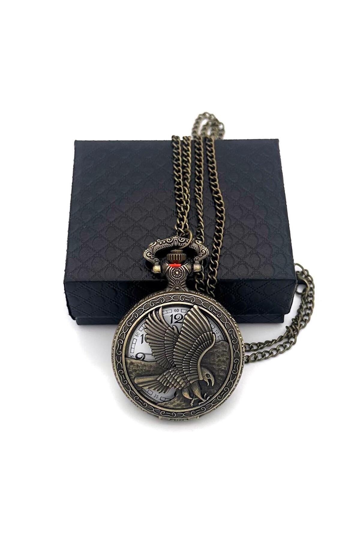 valkyrie Vintage Kartal Motifli Retro Köstekli Cep Saati – Beşiktaş Saat – Kutulu Hediyelik