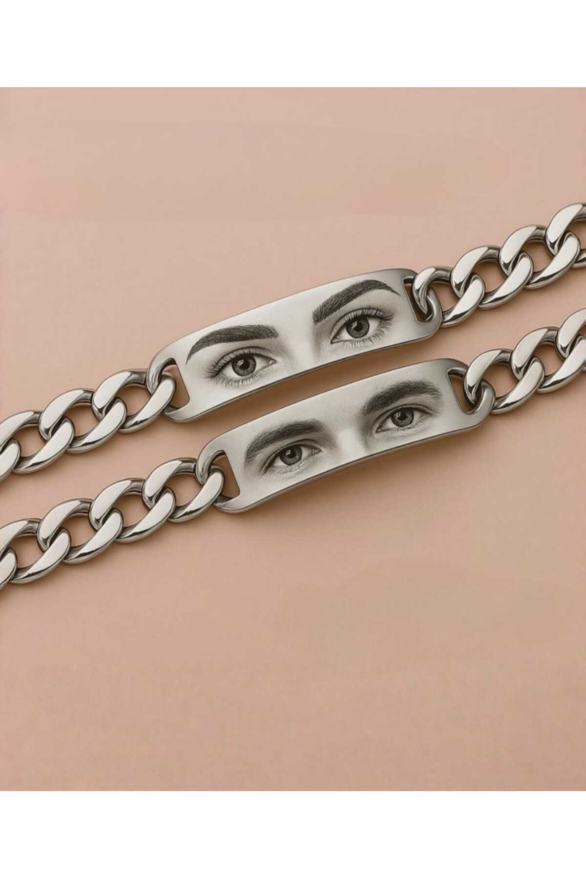 Vamoria Kişiye Özel Tasarlanabilir İsimli Göz Baskılı Çelik Çift Bilekliği (2 ADET)