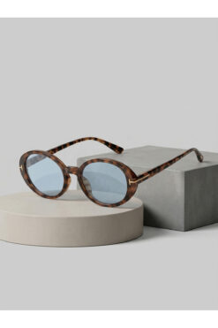 VEGA EYEWEAR Lille Oval Elips Leopar Desenli MAvi Camlı Trend Model Güneş Gözlüşü 58 18 145