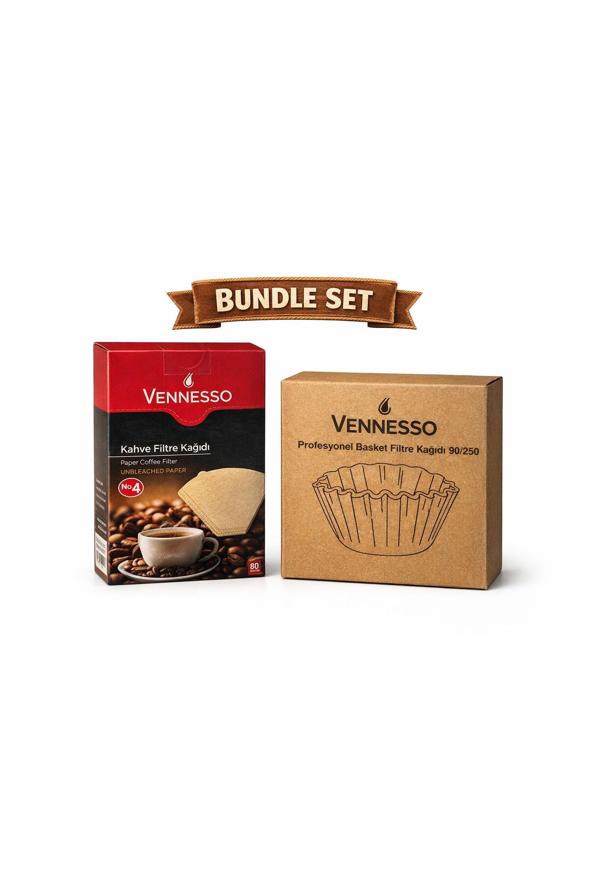 VENNESSO BASKET TİPİ KAHVE FİLTRE KAĞIDI 90/250 250’Lİ+ NO:4 KAHVE FİLTRE KAĞIDI 80’Lİ