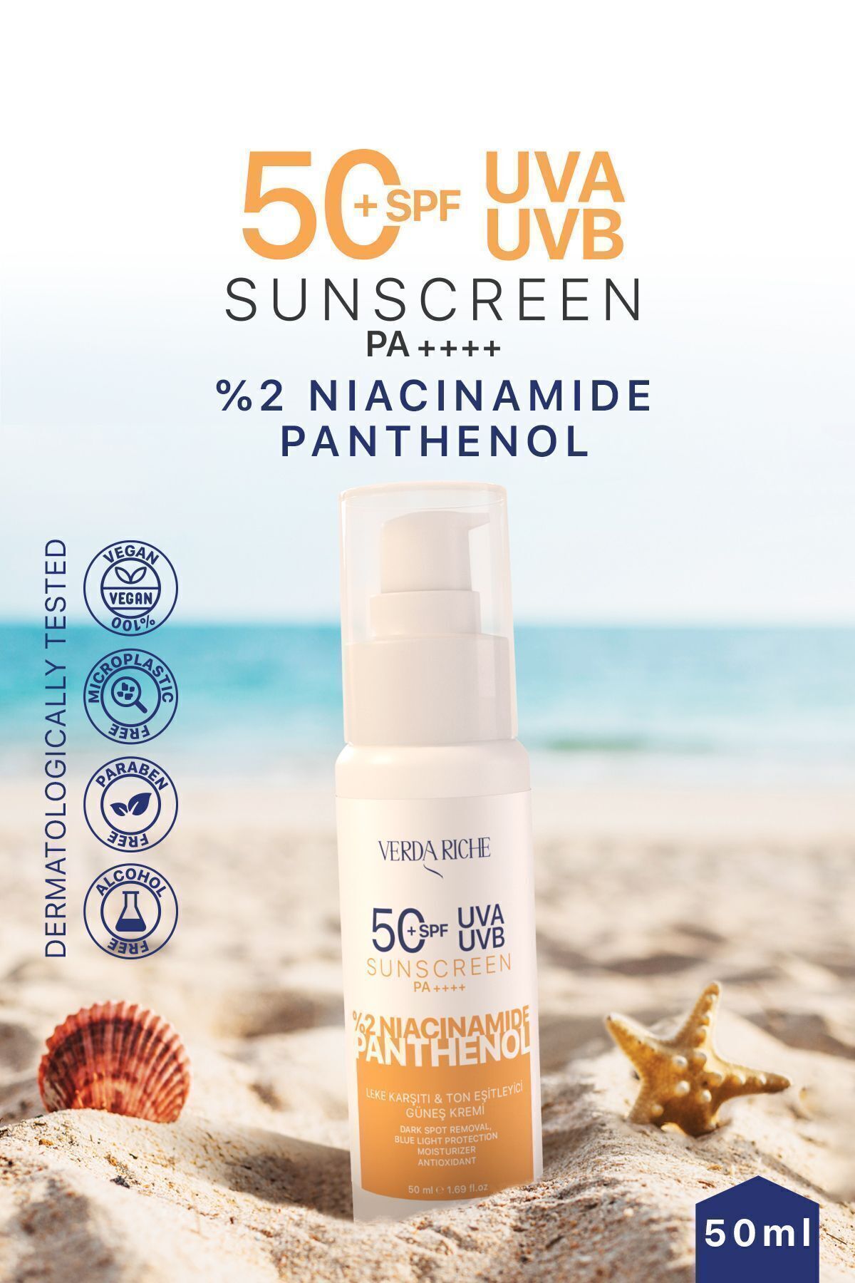 Verda Riche Yüksek Korumalı SPF 50+ Ton Eşitleyici, Siyah Nokta ve Leke Karşıtı Yüz Güneş Kremi 50ml ürünü ucuz fiyat, hızlı kargo imkanı ile hemen sitemizden sipariş verin.