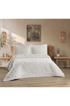 diabella İskandinav Jasmin 3 Parça Çift Kişilik Yatak Örtüsü Krem