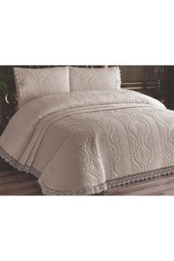 BİRHOME Estila Jakarlı Şönil Çift Kişilik Yatak Örtüsü (bej)