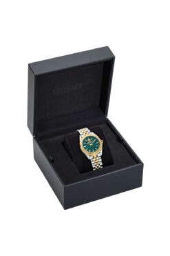 CaseDiameter:36 mm WaterProof:5 ATM CaseThickness:9 mm StrapLanyardColor:Altın Rengi/Metalik Gri CaseColor:Altın Rengi|Metalik Gri DialType:Analog KasaMateryali:Çelik StrapLanyardProperty:Çelik Yaş Grubu:Kadın Gender:Kadın CategoryName:Kadın Klasik Saat Style:Klasik Saatler Technology:Quartz GlassProperty:Safir Machine:Swiss Made BrandName:Versace DialColor:Yeşil KadranTasi:Yok Calendar:Yok Kronometre:Yok CaseStone:Yok Alarm:Yok DialStone:Yok CaseShape:Yuvarlak