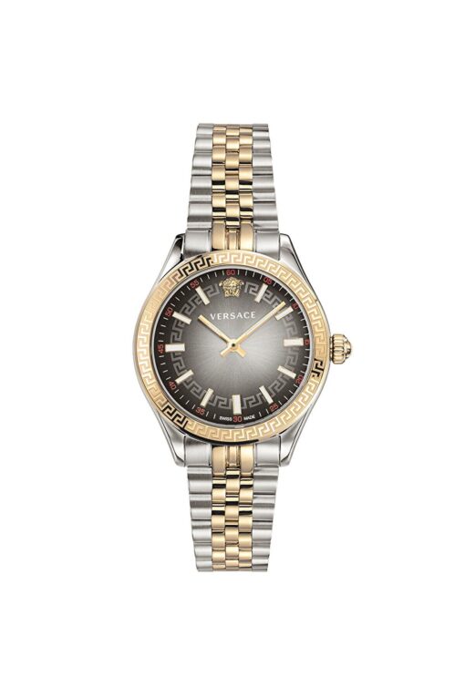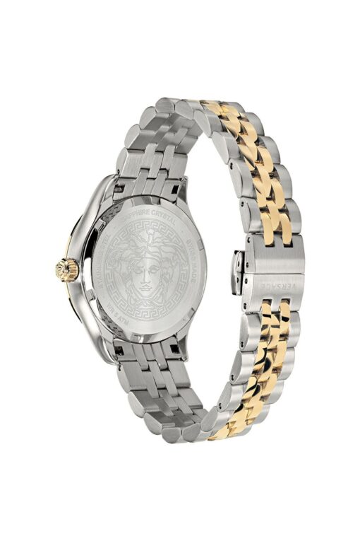 CaseDiameter:36 mm WaterProof:5 ATM CaseThickness:9 mm StrapLanyardColor:Altın Rengi/Metalik Gri CaseColor:Altın Rengi|Metalik Gri DialType:Analog KasaMateryali:Çelik StrapLanyardProperty:Çelik Gender:Kadın Yaş Grubu:Kadın CategoryName:Kadın Klasik Saat Style:Klasik Saatler Technology:Quartz GlassProperty:Safir DialColor:Siyah Machine:Swiss Made BrandName:Versace KadranTasi:Yok CaseStone:Yok Alarm:Yok DialStone:Yok Calendar:Yok Kronometre:Yok CaseShape:Yuvarlak
