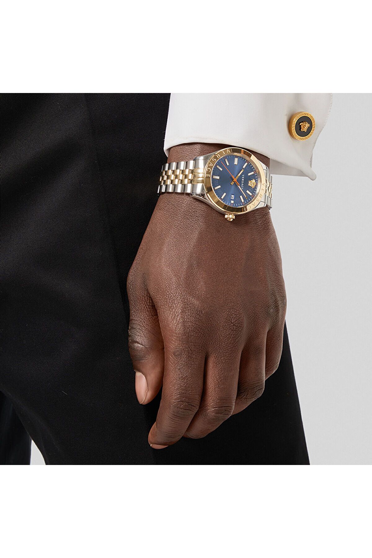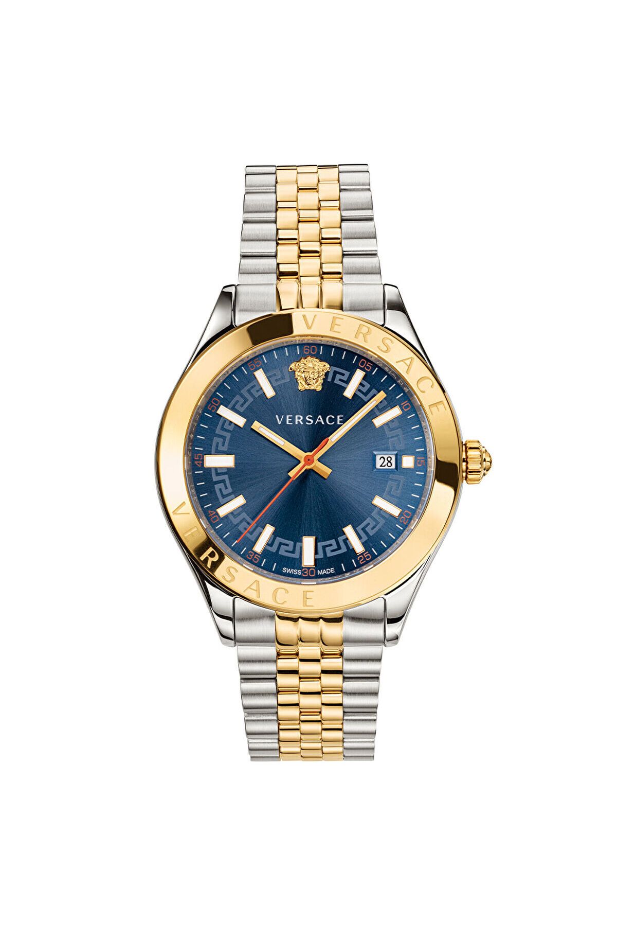 CaseThickness:10 mm CaseDiameter:42 mm WaterProof:5 ATM CaseColor:Altın Rengi StrapLanyardColor:Altın Rengi/Metalik Gri DialType:Analog KasaMateryali:Çelik StrapLanyardProperty:Çelik CategoryName:Erkek Klasik Saat Yaş Grubu:Kadın|Erkek Gender:Kadın|Erkek Style:Klasik Saatler DialColor:Mavi Technology:Quartz GlassProperty:Safir Machine:Swiss Made Calendar:Var BrandName:Versace Kronometre:Yok KadranTasi:Yok CaseStone:Yok Alarm:Yok DialStone:Yok CaseShape:Yuvarlak