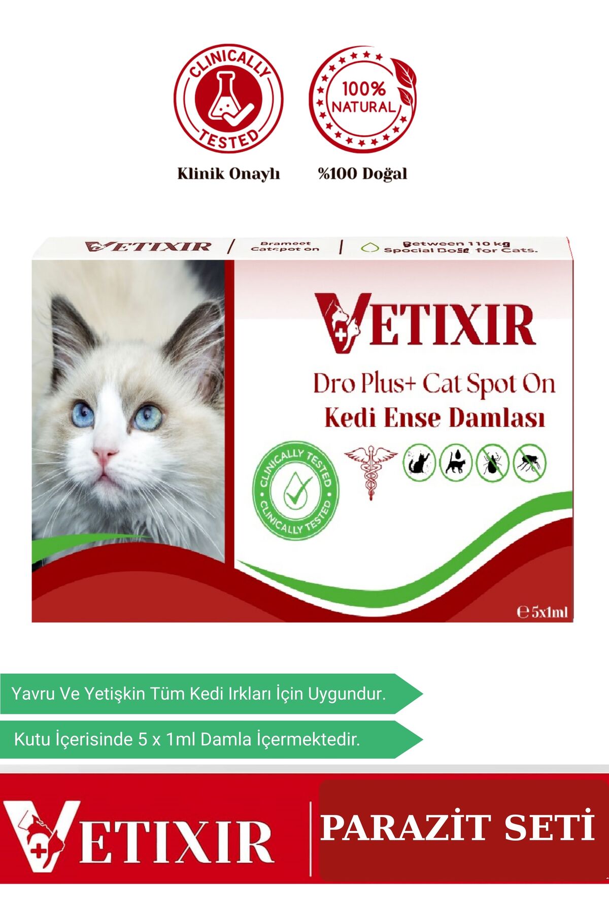 VETIXIR Kedi Bitkisel Ense Dış Parazit Bit, Pire, Kene, Deri Bakımı İçin Etkili 5 Adet Damla (1-10 kg)