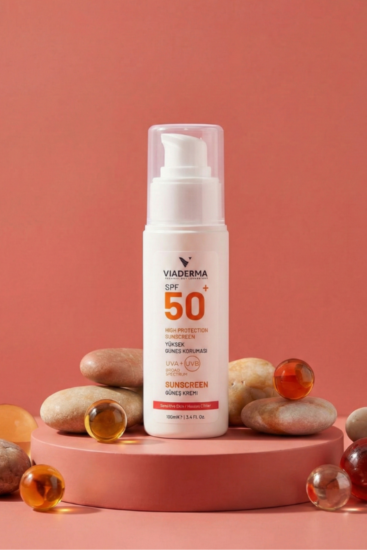 Viaderma Hassas Ciltler için Parfümsüz SPF 50+ Yüksek Koruma Güneş Kremi 100 ml, Suya Dayanıklı