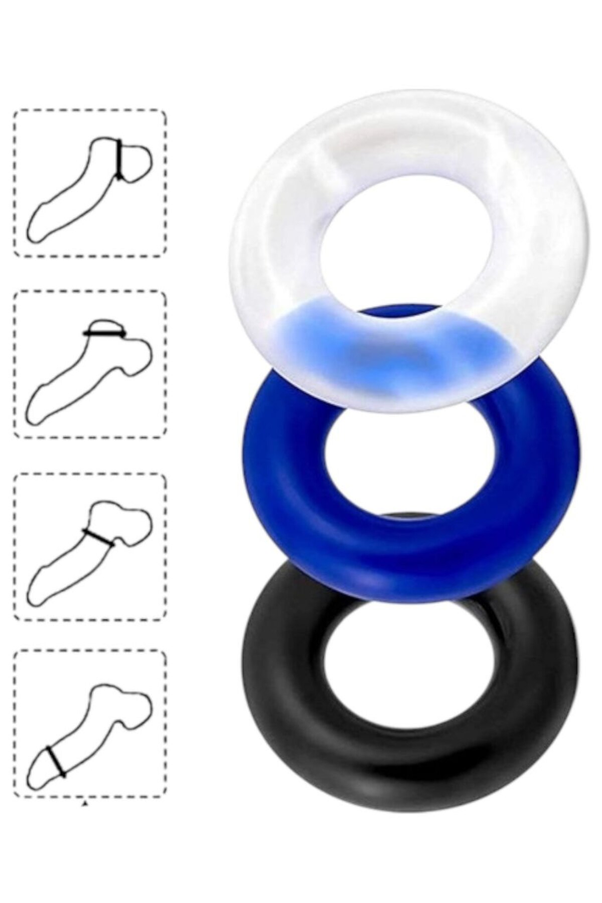 vibra 3’lü Silikon Penis Halkası Seti (Üçlü Penis Yüzüğü)