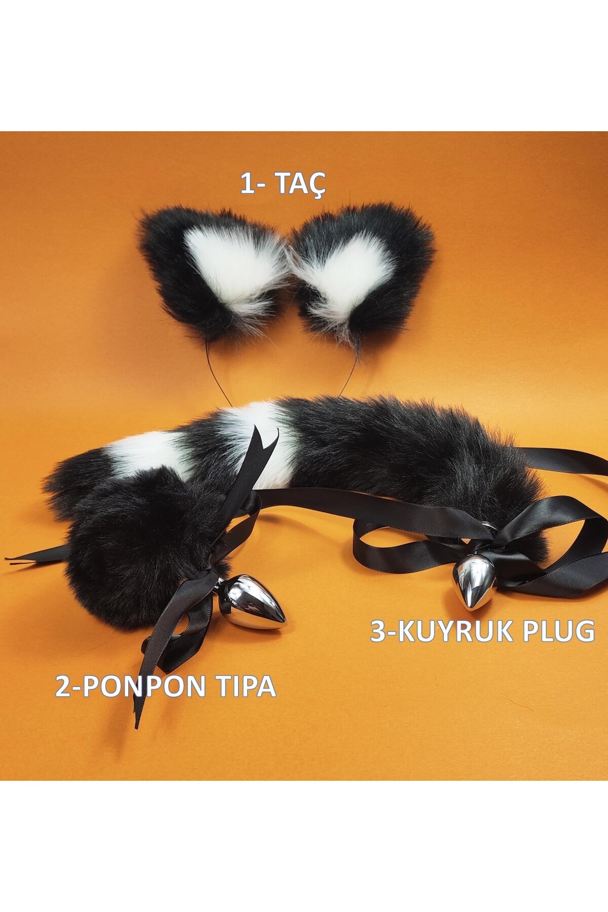 Vibratoy 3 Parça Anal Butt Plug Seti 1- Kuyruklu Anal Tıpa 2- Ponpon Anal Plug 3-Fantezi Kedi Taç