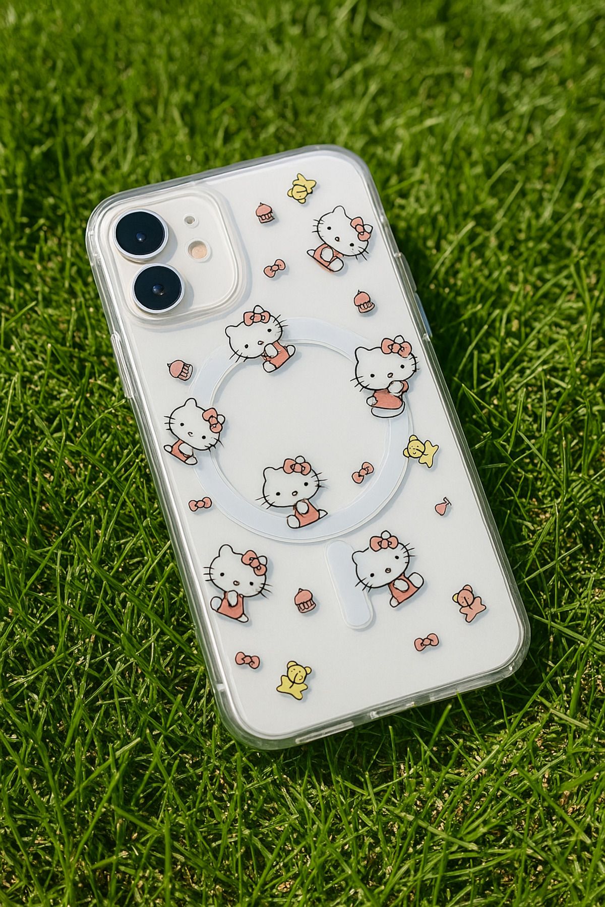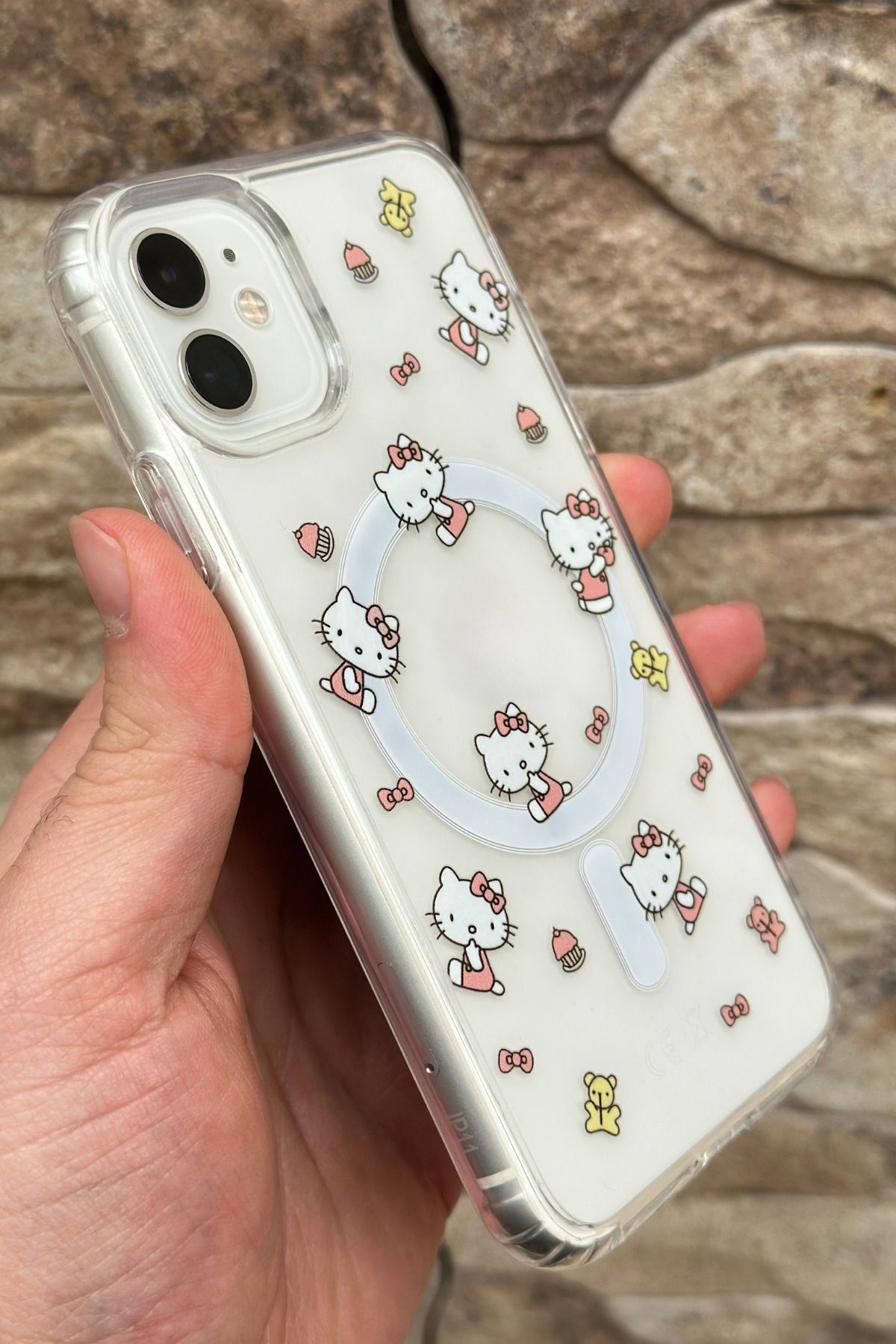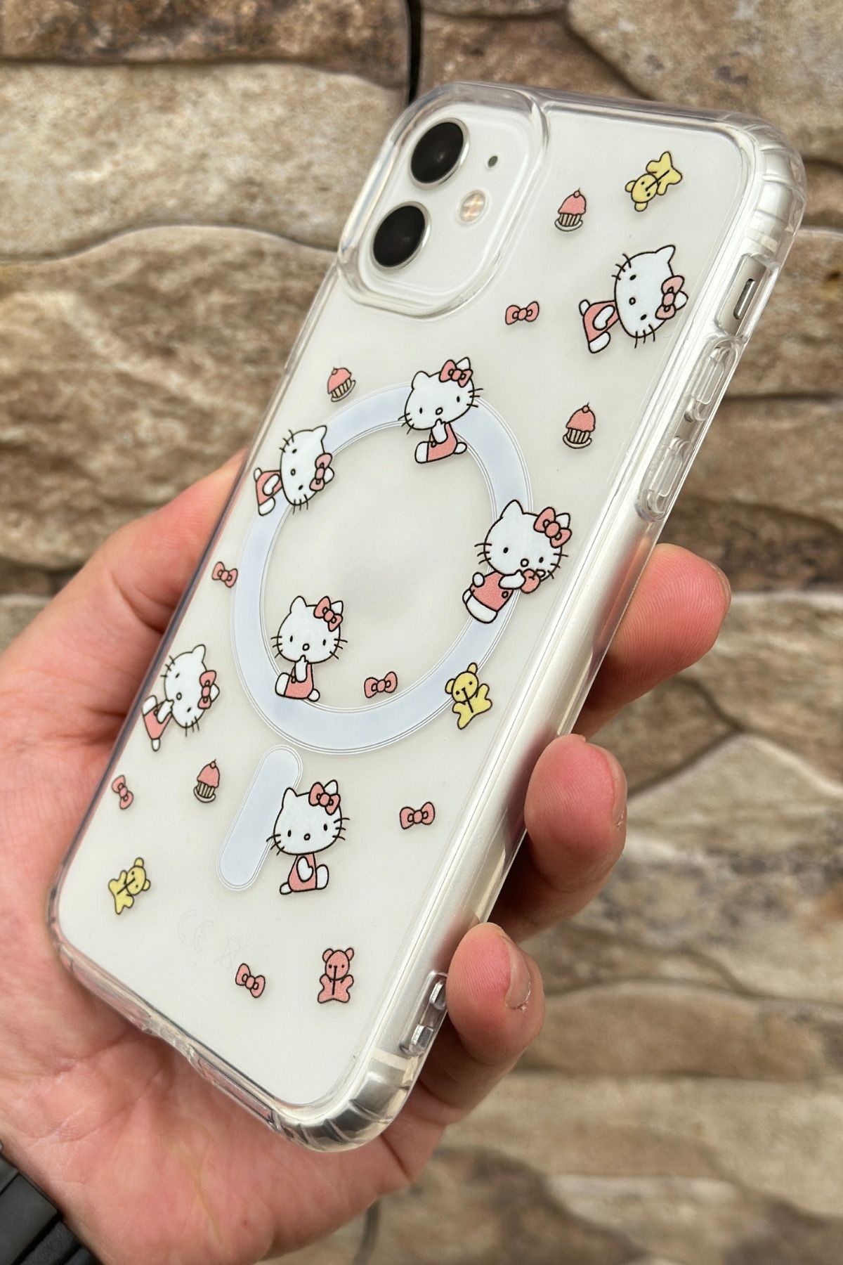 iPhone 11 Şeffaf Hello Kity Desenli Magsafe Wireless Kablosuz Şarj Destekli Kitty Magsafe Kılıf