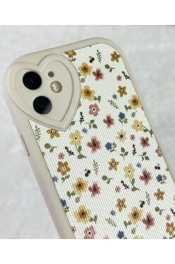 Vip Case iPhone 12 – Kamera Kalp Tasarımlı Minik Tatlı Çiçek Desenli Şirin Flove Kılıf