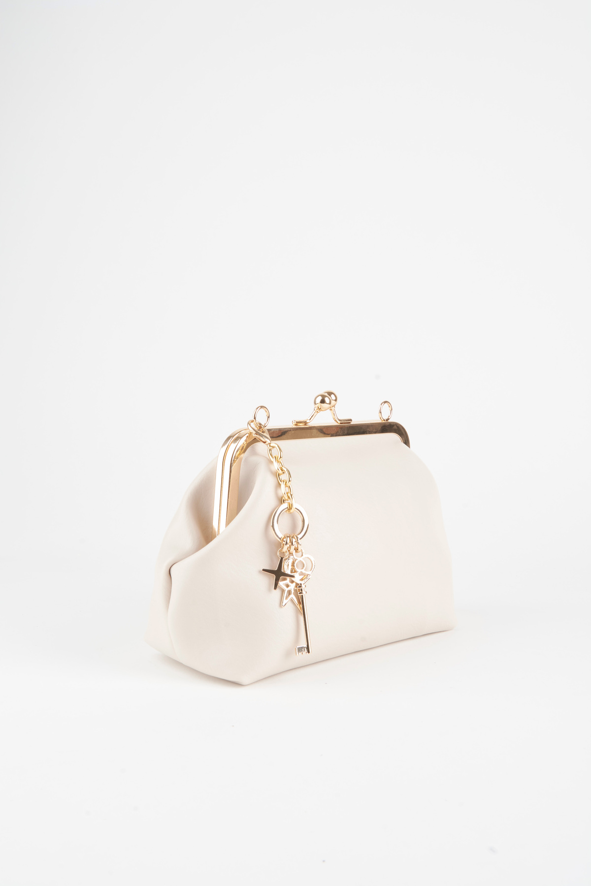 Vivaq Kadın Krem Anahtar Charm Hediyeli Burs Kapama Astarlı El Kol Ve Omuz Çantası
