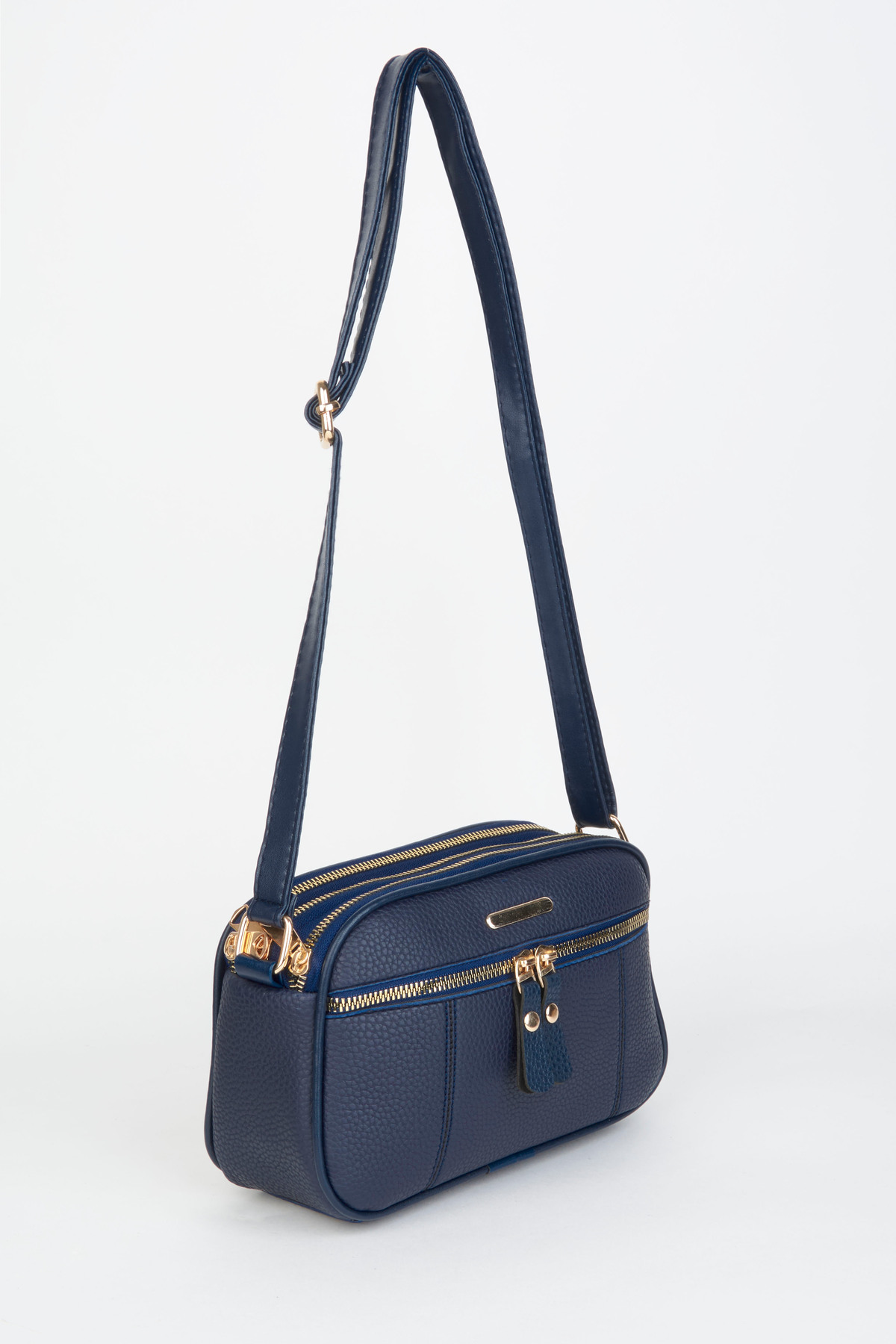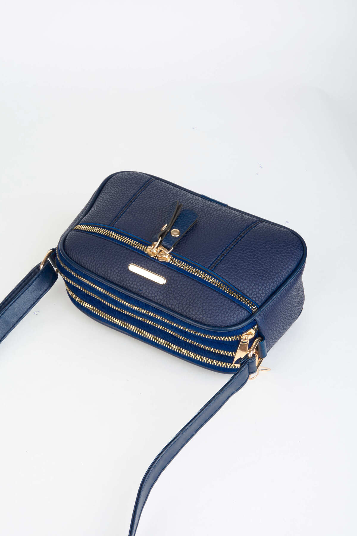 Vivaq Kadın Sincap Lacivert 4 Bölmeli Suni Deri Orta Boy Fermuar Kapama El Kol Ve Omuz Çantası