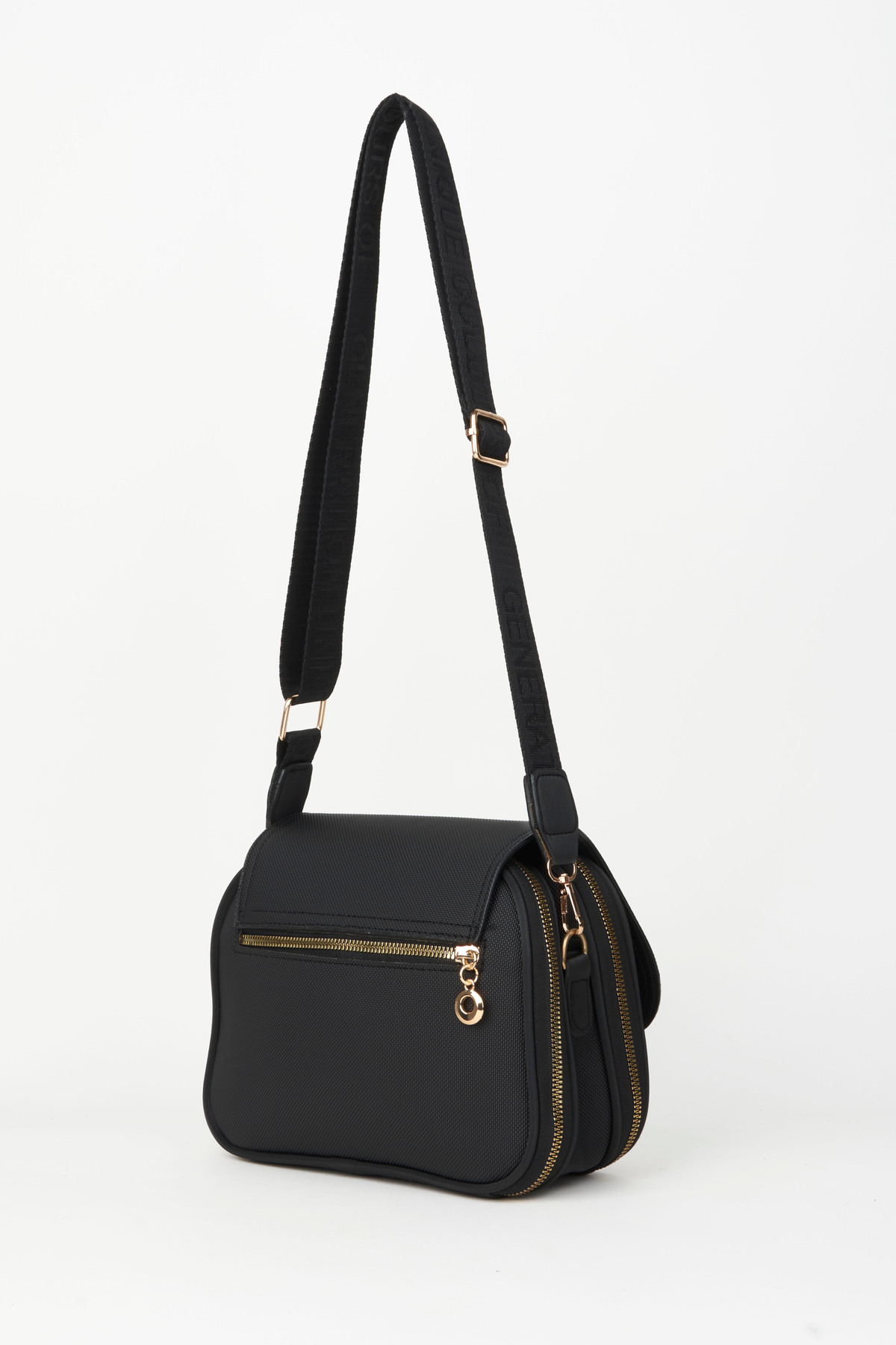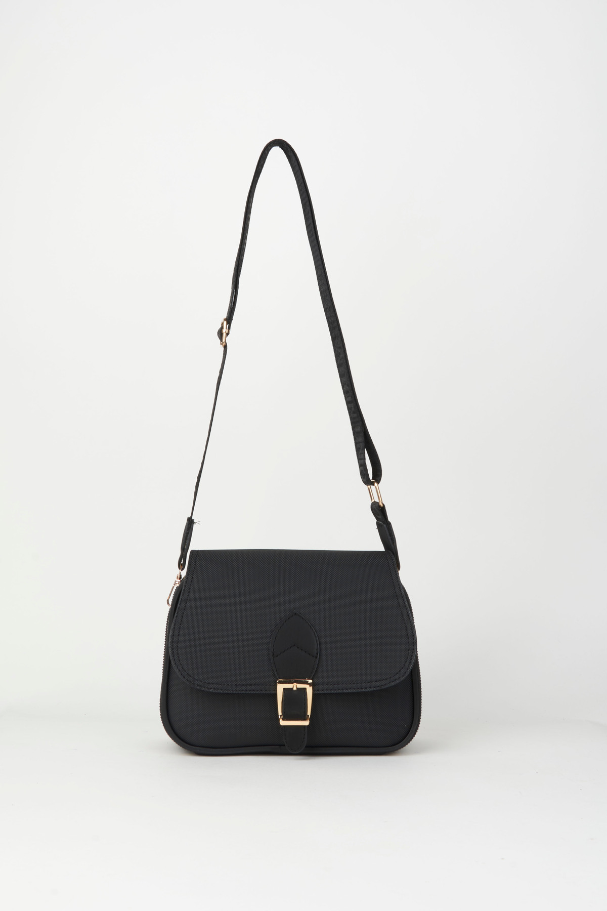 Vivaq Kadın Yonca Siyah 4 Cepli Kapaklı Kolon Askılı Fermuar ve Çıt Çıt Kapama El Kol Ve Omuz Çantası