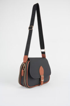 Vivaq Kadın Yonca Siyah-Taba 4 Cepli Kapaklı Fermuar ve Çıt Çıt Kapama Kol Ve Omuz Çantası