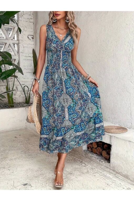 Viyamo Kadın Beli Gipeli Etnik Desen Sıfır Kol Süprem Elbise en ucuz fiyata kozmetikara.com sitemizden sipariş verebilirsiniz.