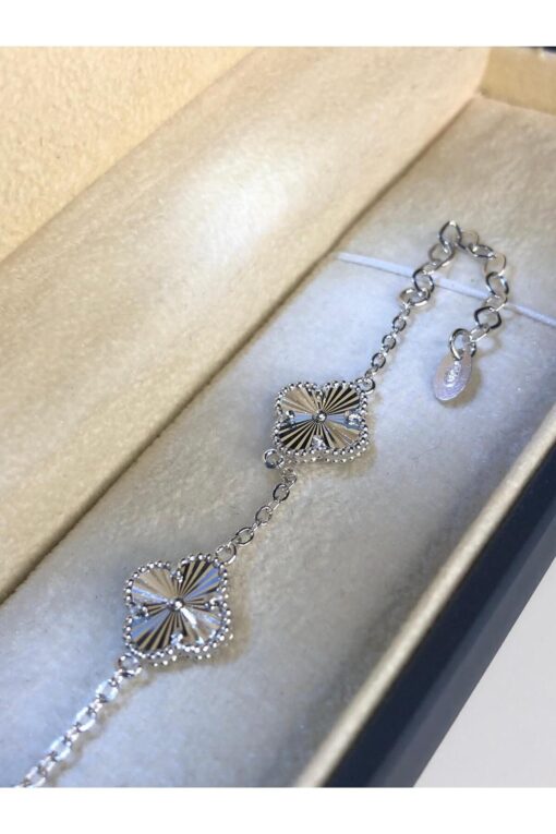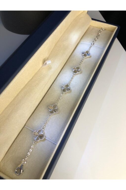 vogutima Erkek Kadın Gümüş Bileklik – 4 Yapraklı Yonca 5’li Lazerli Model Rhodium Kaplama • Işıklı Kutuda