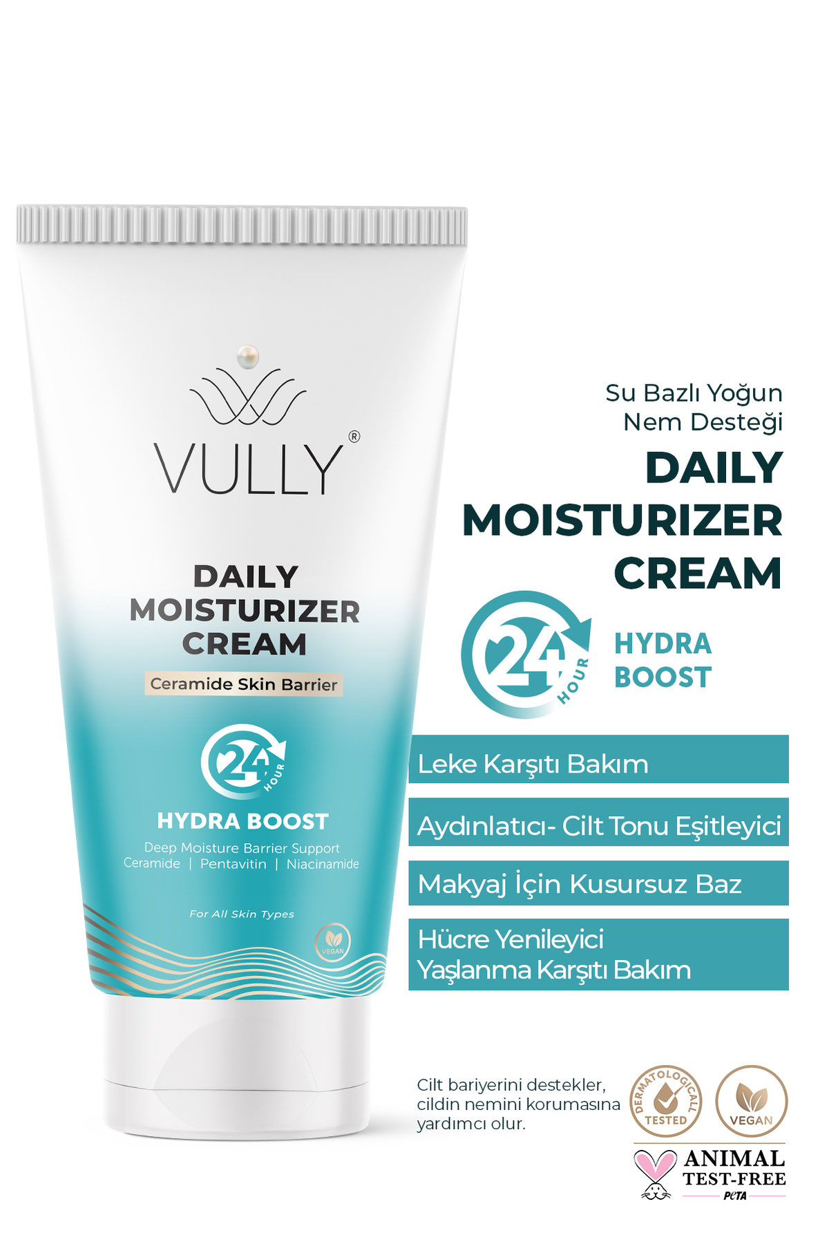 VULLY Su Bazlı Aydınlatıcı Cilt Tonu Eşitleyici Bariyer Onarıcı 24 Saat Nemlendirici Yüz Kremi 50 Ml