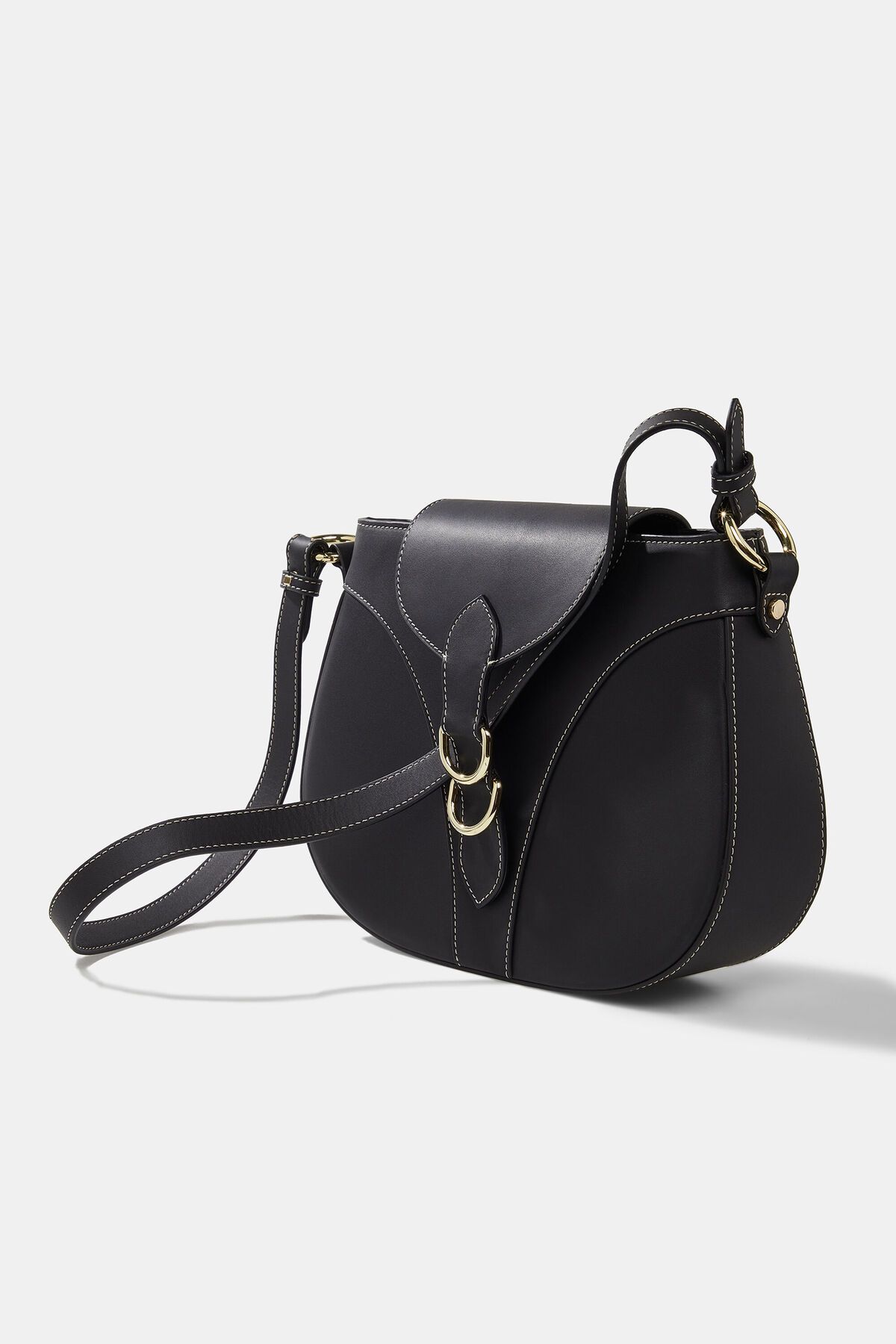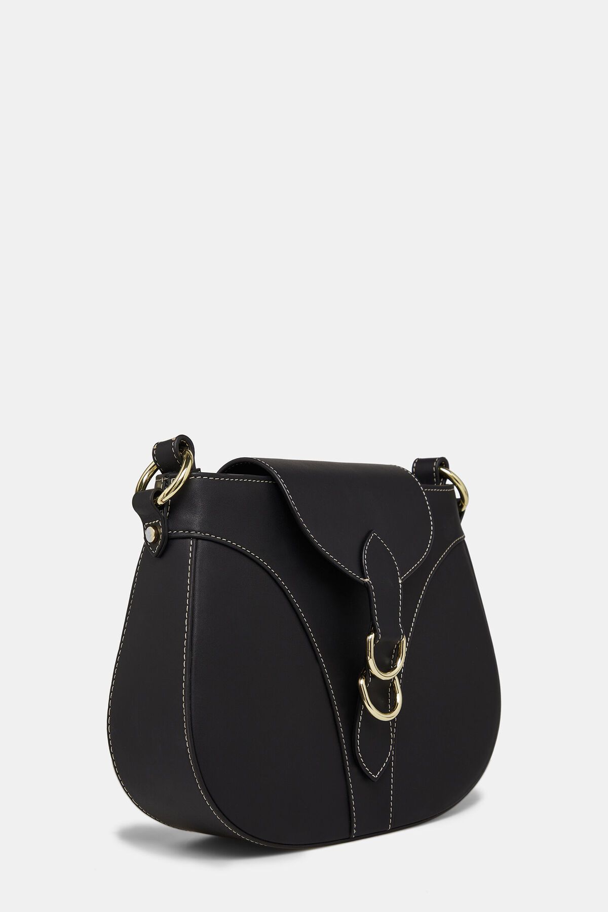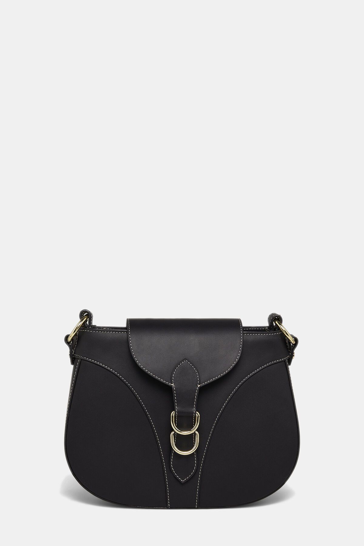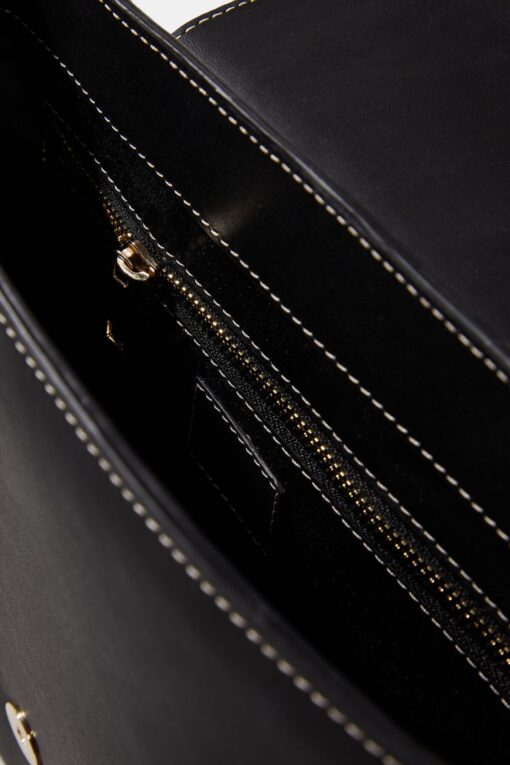 Aksesuar detayı ve uzun omuz askısı ile dikkat çeken bu tasarım, fermuarlı iç cebe sahiptir.