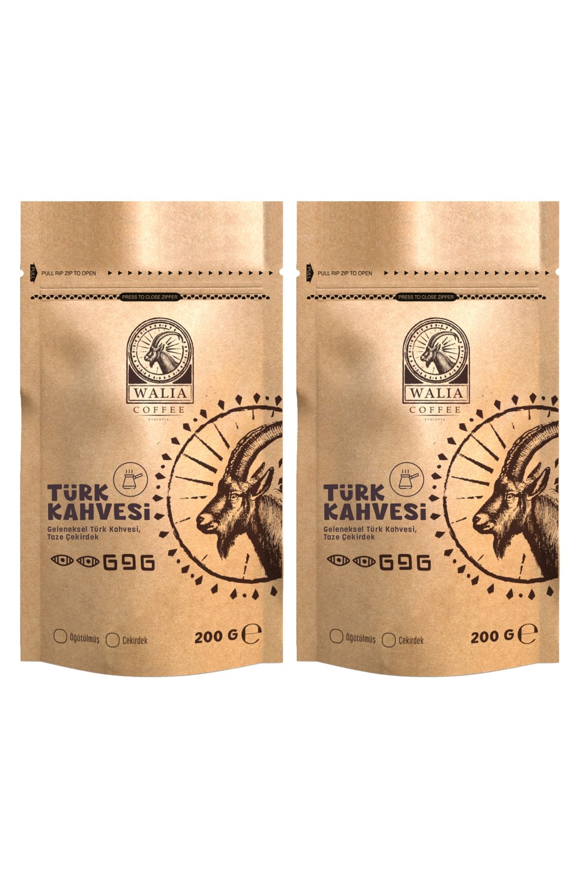 WALIA COFFEE ETHIOPIA 2 PAKET WALIA TÜRK KAHVESİ 200 GRAM Taze Günlük Öğütülmüş, Geleneksel Tat