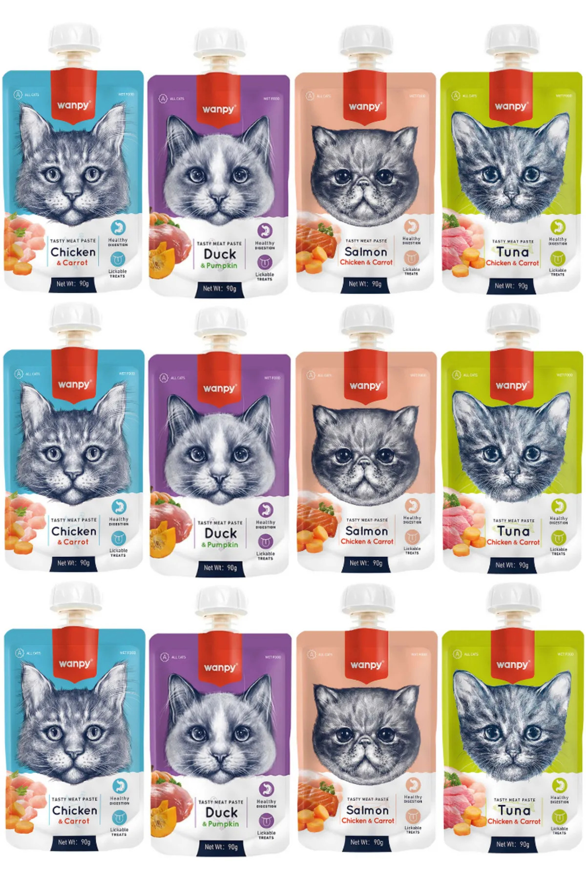 Wanpy Tasty Meat Paste Taze Sıvı Kedi Ödül Maması Karışık 90gr – 12 Adet