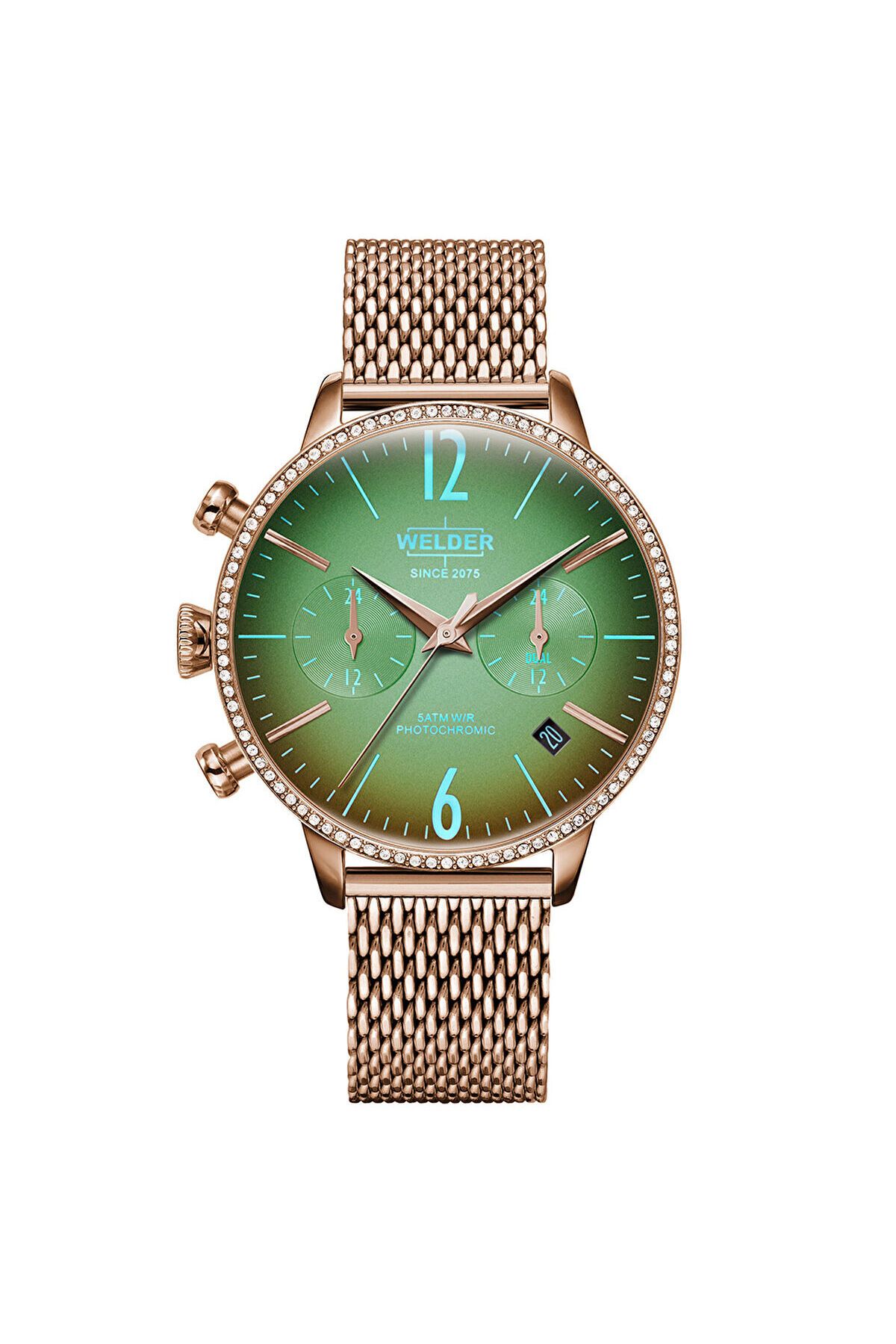 CaseThickness:12 mm CaseDiameter:38 mm WaterProof:5 ATM DialType:Analog KasaMateryali:Çelik StrapLanyardProperty:Hasır Yaş Grubu:Kadın Gender:Kadın CategoryName:Kadın Klasik Saat Style:Klasik Saatler GlassProperty:Mineral Photochromic Technology:Quartz CaseColor:Rose Gold StrapLanyardColor:Rose Gold CaseStone:Swarovski DialStone:Swarovski Calendar:Var BrandName:Welder Kronometre:Yok KadranTasi:Yok Alarm:Yok CaseShape:Yuvarlak