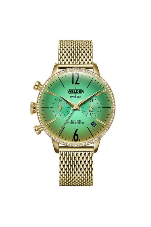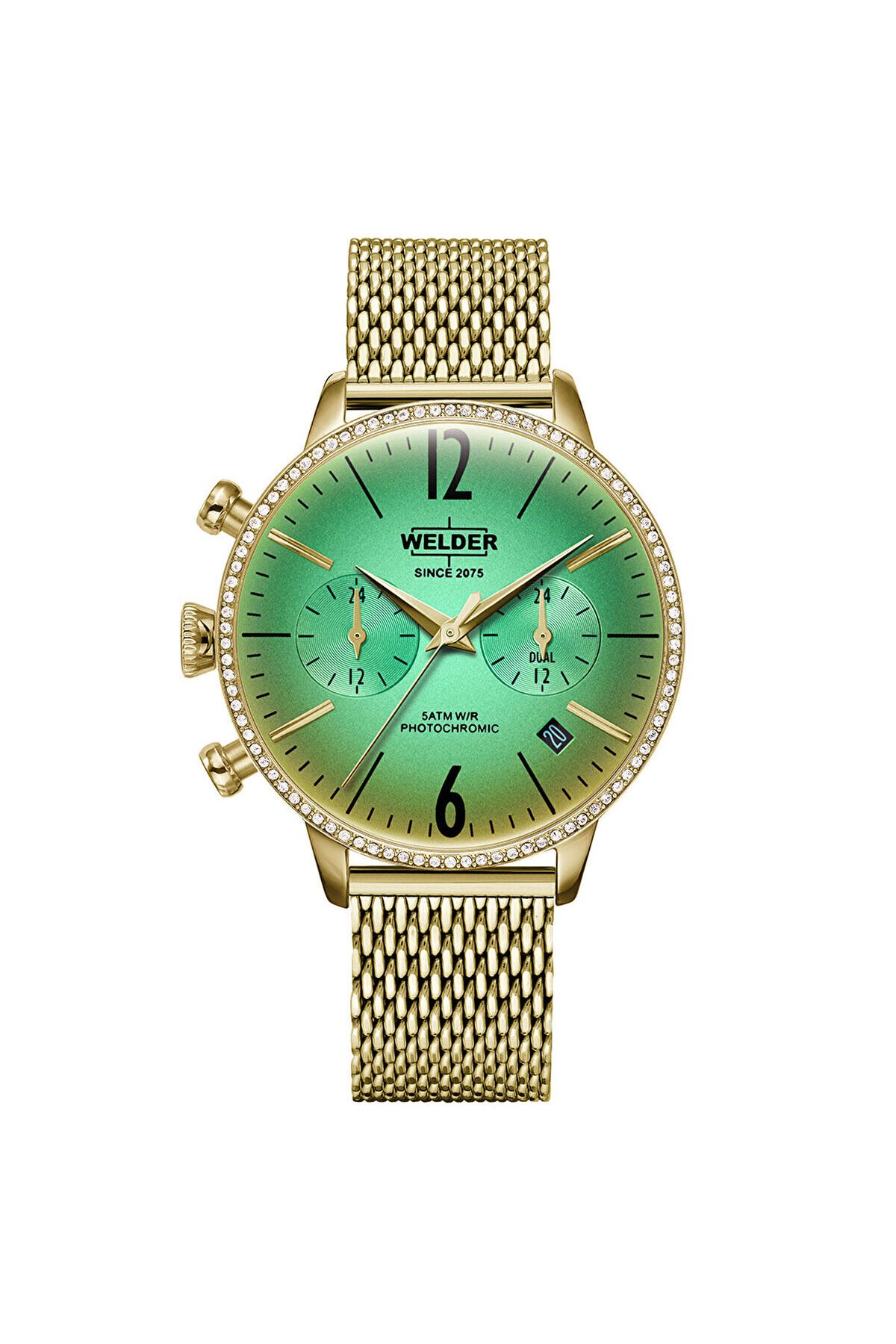 CaseThickness:12 mm CaseDiameter:38 mm WaterProof:5 ATM CaseColor:Altın Rengi StrapLanyardColor:Altın Rengi DialType:Analog KasaMateryali:Çelik StrapLanyardProperty:Hasır Yaş Grubu:Kadın Gender:Kadın CategoryName:Kadın Klasik Saat Style:Klasik Saatler GlassProperty:Mineral Photochromic Technology:Quartz CaseStone:Swarovski DialStone:Swarovski Calendar:Var BrandName:Welder Kronometre:Yok KadranTasi:Yok Alarm:Yok CaseShape:Yuvarlak