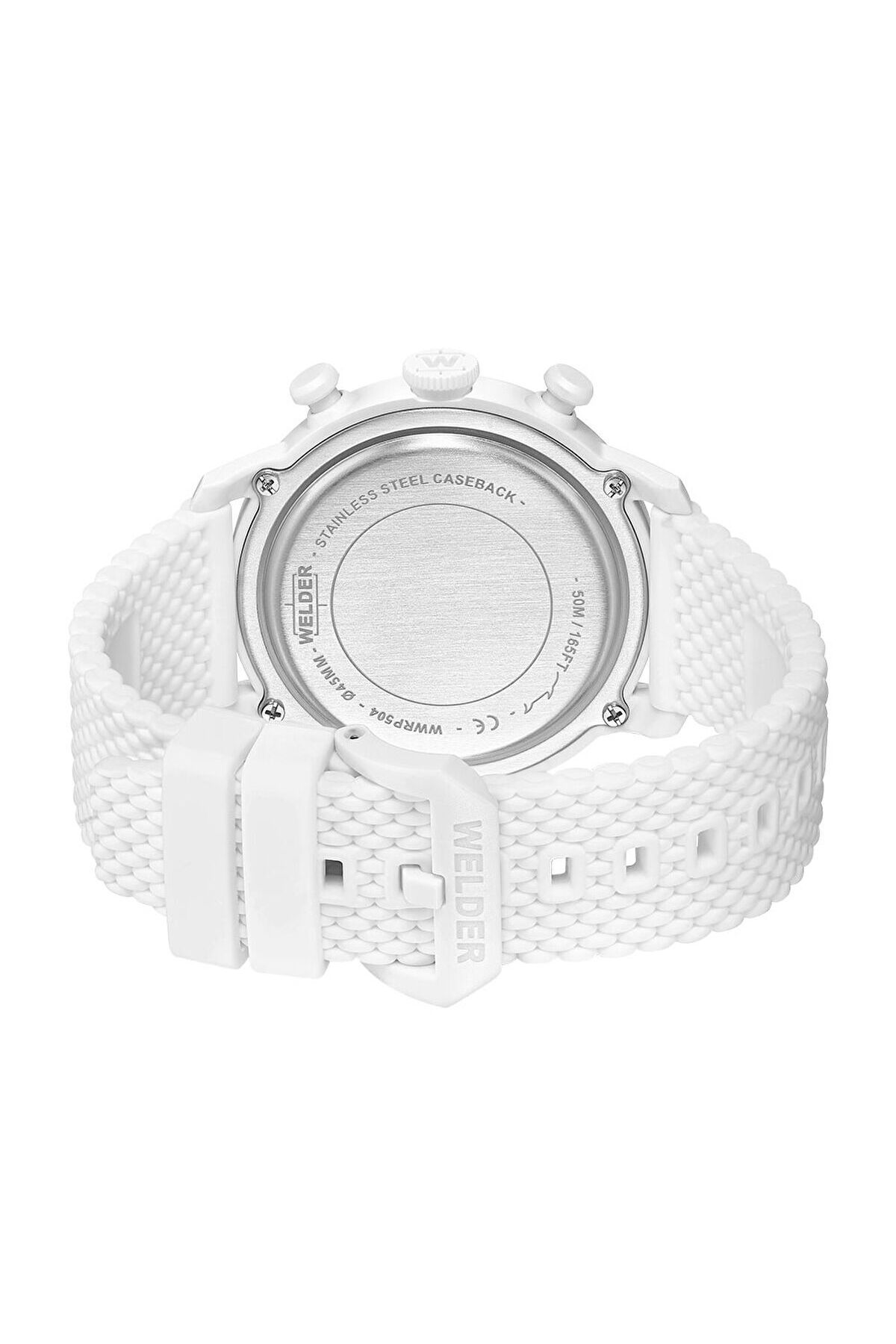 CaseThickness:14 mm CaseDiameter:45 mm WaterProof:5 ATM DialType:Analog CaseColor:Beyaz StrapLanyardColor:Beyaz Mensei:Çin Gender:Erkek Yaş Grubu:Erkek CategoryName:Erkek Spor Saat GlassProperty:Mineral Photochromic KasaMateryali:Plastik Technology:Quartz StrapLanyardProperty:Silikon Style:Spor Saatler Calendar:Var BrandName:Welder Kronometre:Yok KadranTasi:Yok CaseStone:Yok Alarm:Yok DialStone:Yok CaseShape:Yuvarlak