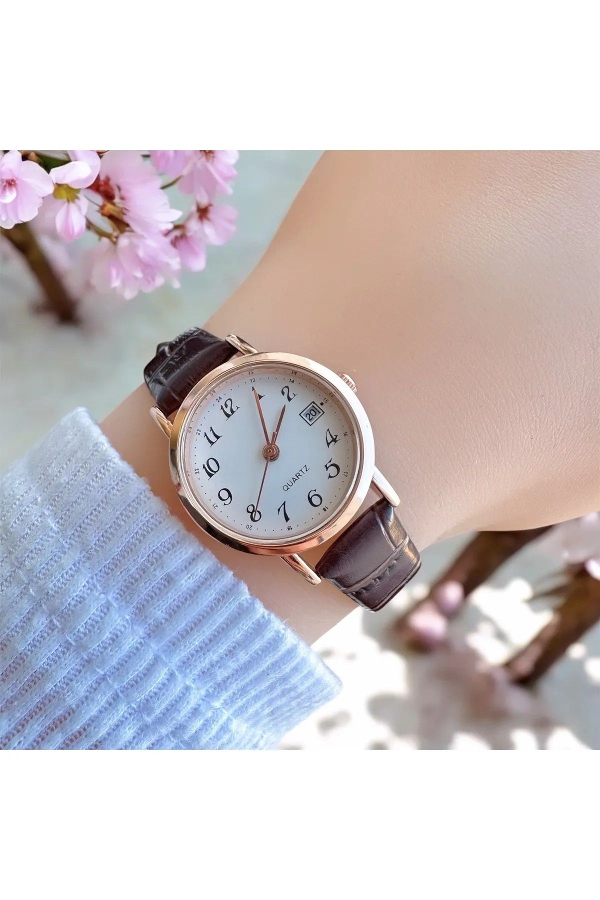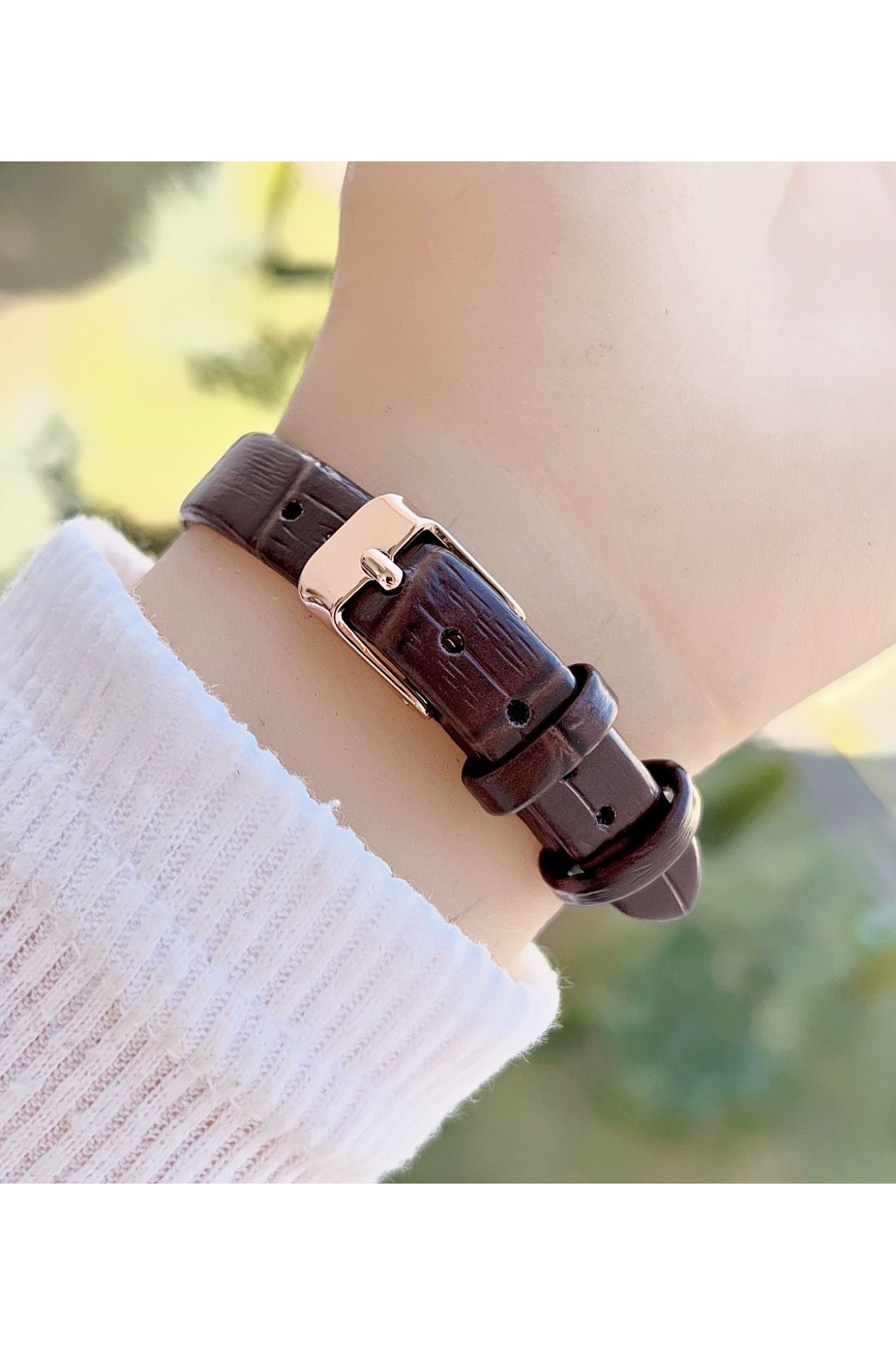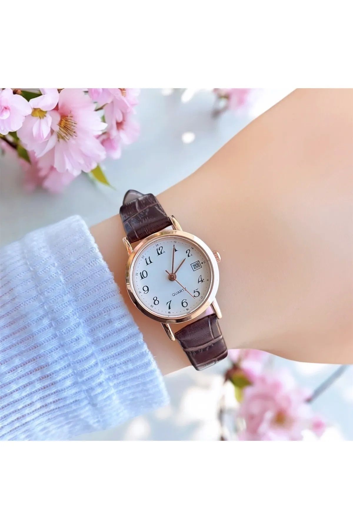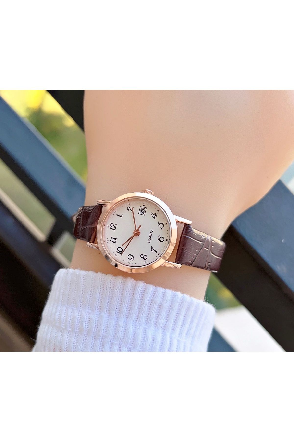 Weluxa RN1J77A64 Rose Gold Renk Kasa Acı Kahve Deri Kordonlu Minimal Kadın Kol Saati