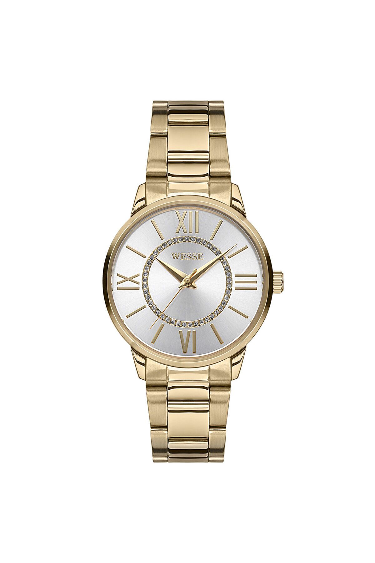 CaseDiameter:36 mm WaterProof:5 ATM CaseThickness:9 mm CaseColor:Altın Rengi StrapLanyardColor:Altın Rengi DialType:Analog KasaMateryali:Çelik StrapLanyardProperty:Çelik DialColor:Gümüş Tonu Gender:Kadın Yaş Grubu:Kadın CategoryName:Kadın Klasik Saat Style:Klasik Saatler GlassProperty:Mineral Technology:Quartz KadranTasi:Var BrandName:Wesse CaseStone:Yok Calendar:Yok Kronometre:Yok DialStone:Yok CaseShape:Yuvarlak