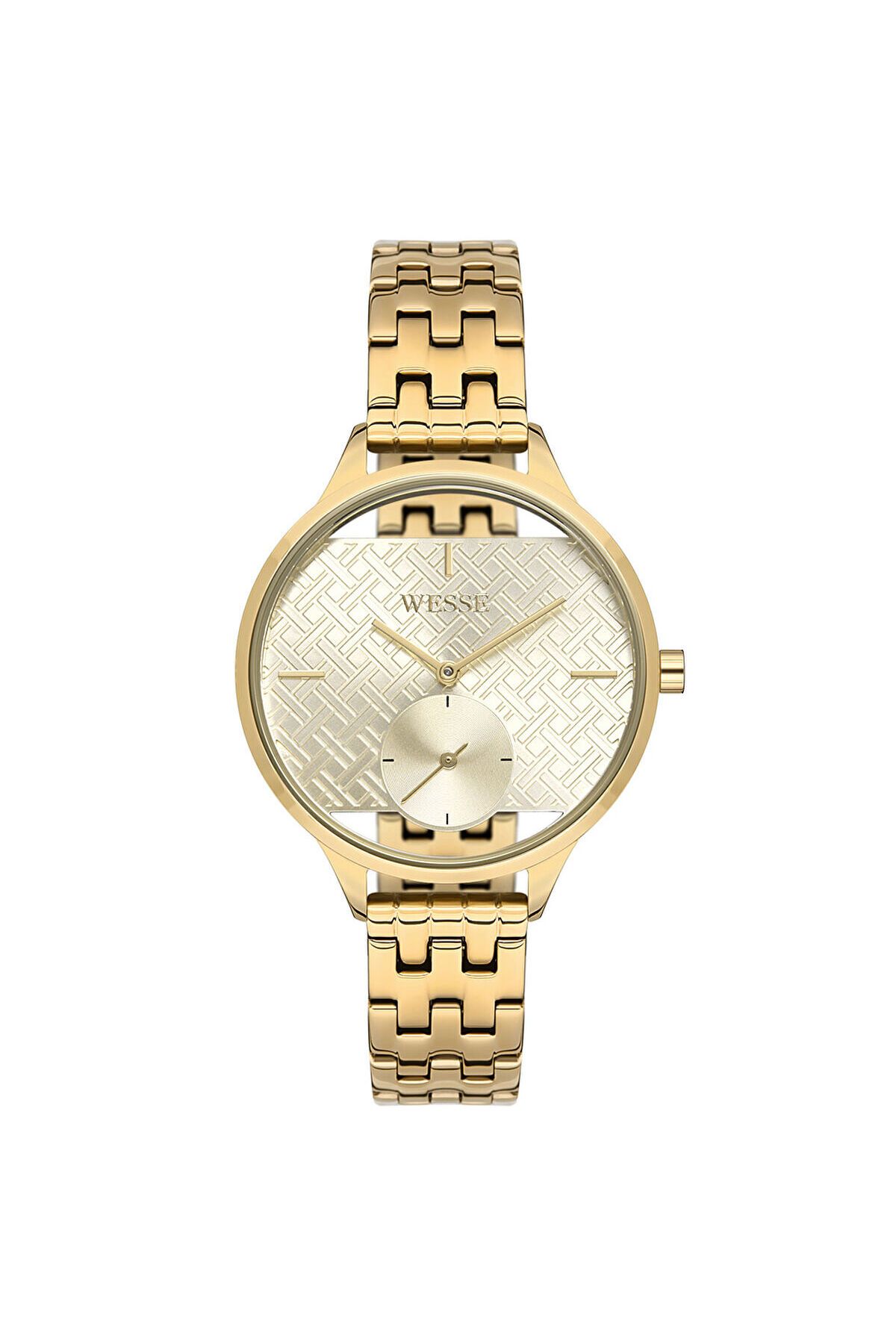WaterProof:3 ATM CaseDiameter:37 mm CaseThickness:9 mm CaseColor:Altın Rengi StrapLanyardColor:Altın Rengi DialColor:Altın Tonu DialType:Analog KasaMateryali:Çelik StrapLanyardProperty:Çelik Gender:Kadın Yaş Grubu:Kadın CategoryName:Kadın Klasik Saat Style:Klasik Saatler GlassProperty:Mineral Technology:Quartz BrandName:Wesse KadranTasi:Yok Calendar:Yok Kronometre:Yok CaseStone:Yok Alarm:Yok DialStone:Yok CaseShape:Yuvarlak