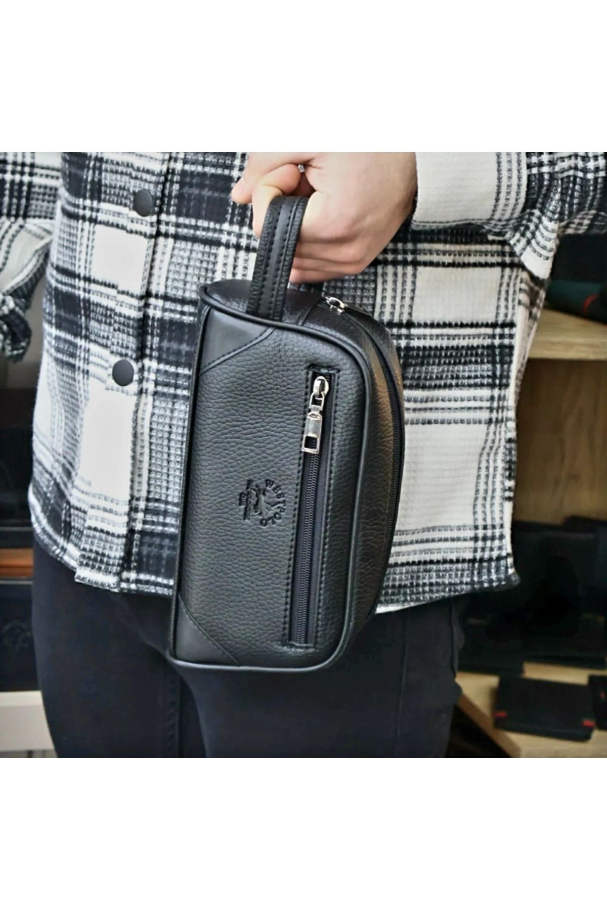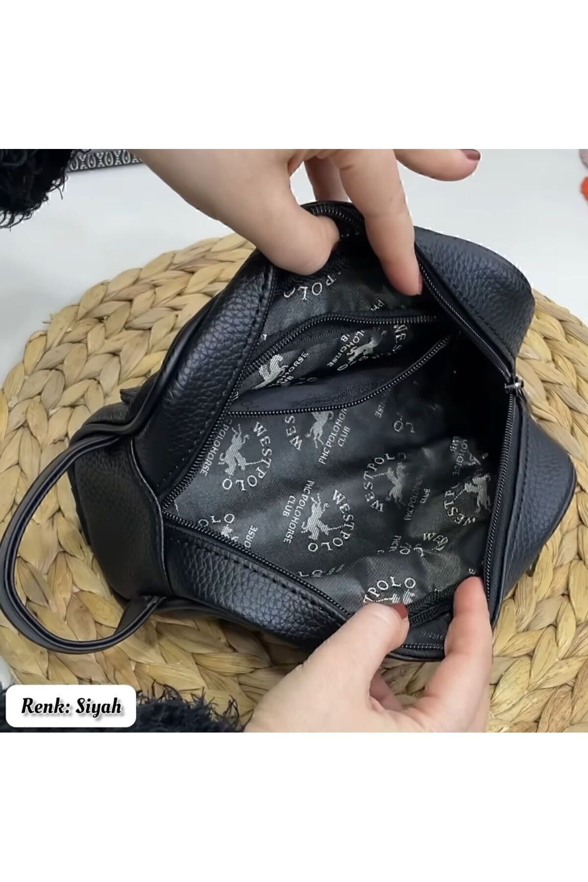 Westpolo 3 Gözlü Bantlı Bileklik Tutmalı Deri El Çantası Traş Çantası Seyahat Çantası