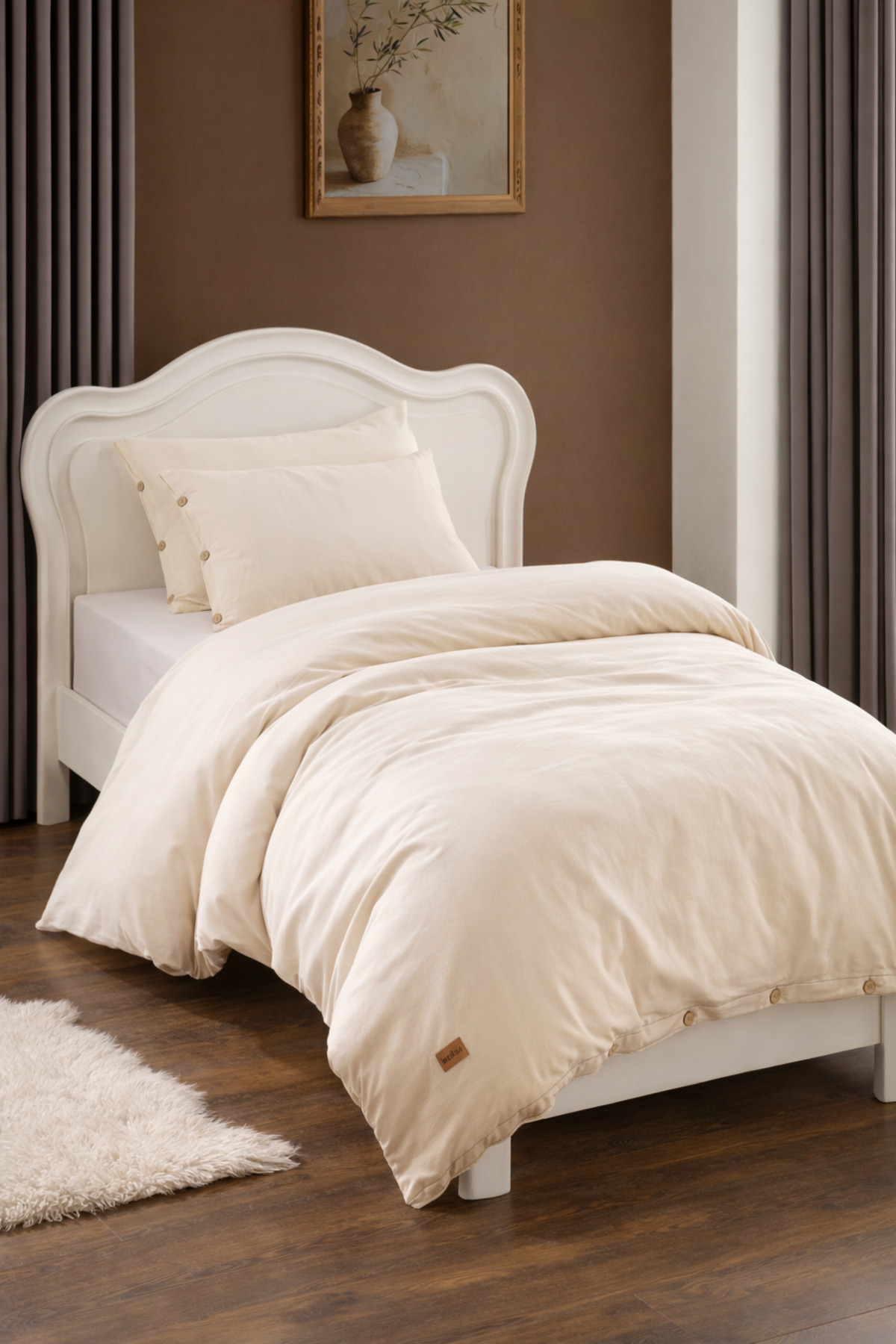 WEXSA %100 Pamuk Doğal Yıkamalı Kumaş Natural Boyasız Tek Kişilik Kahverengi Düğmeli Nevresim Seti