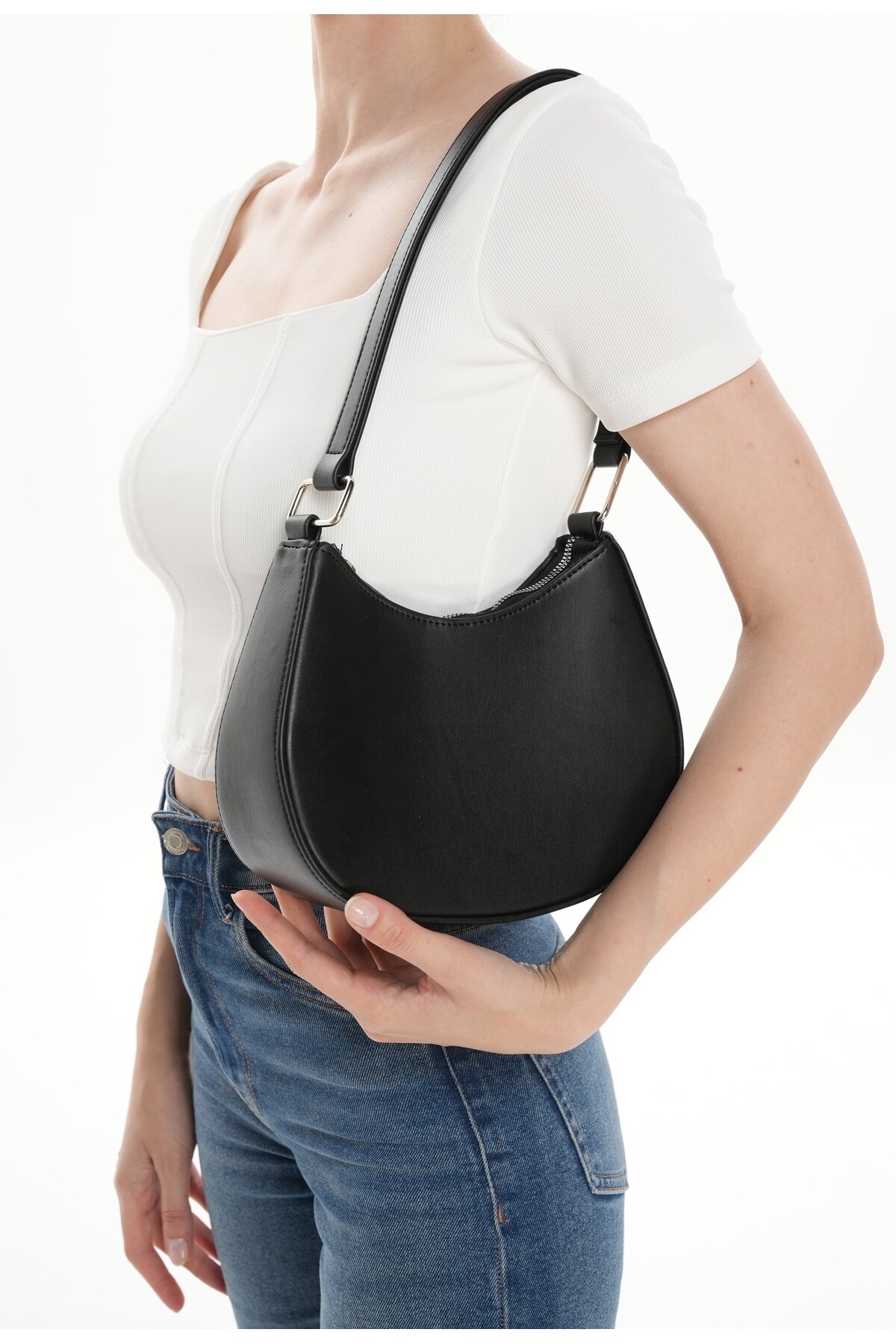 Mia Collection Carlos Model El Ve Kadın Omuz Çantası Düz Siyah