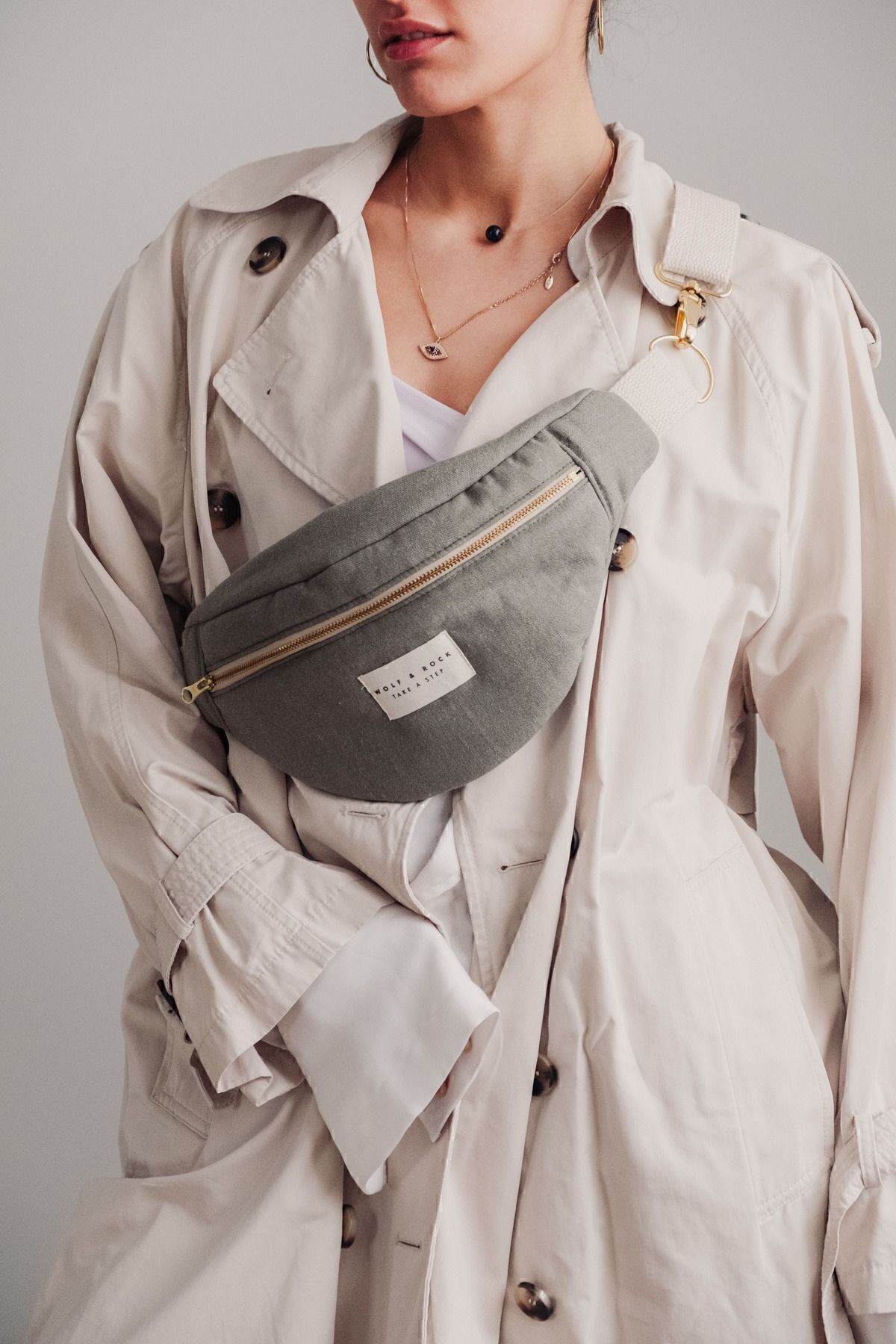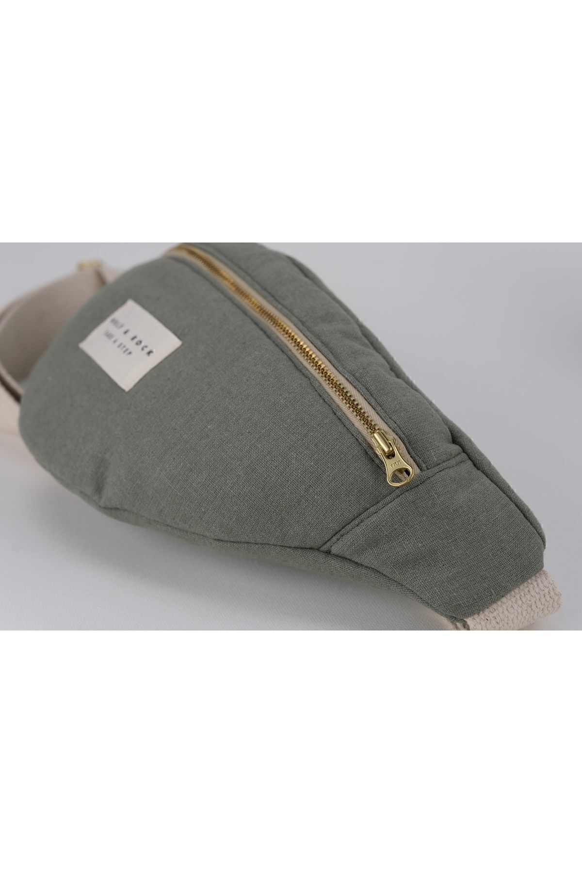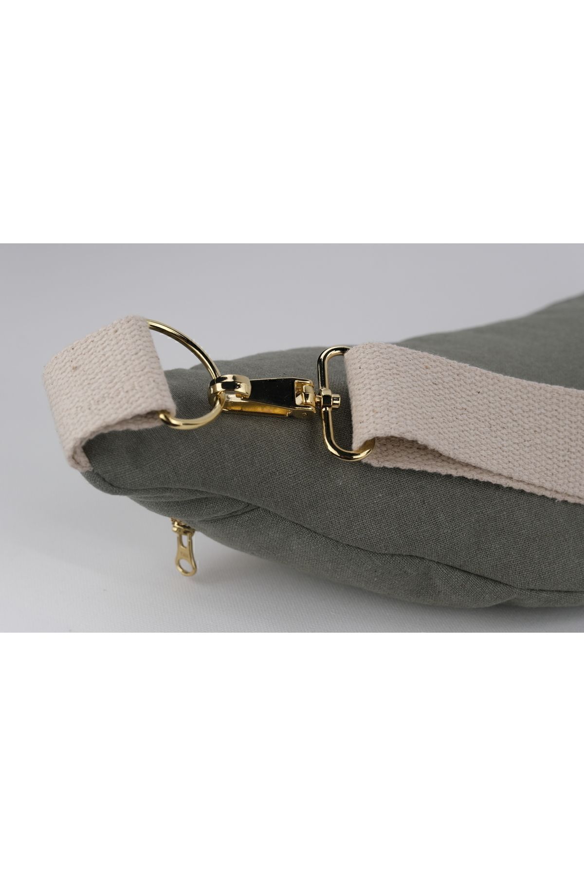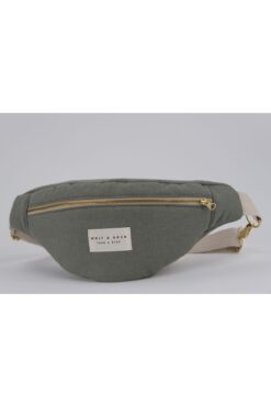 WOLF & ROCK Wolf&Rock Gold Detaylı Haki Keten Kumaş Bel ve Omuz Çantası