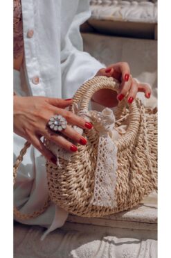 El emeği göz nuru: Her bir hasır çanta, özenle seçilmiş dokuma kumaş kullanılarak üretilmiştir ve bu da ona eşsiz bir dokunuş kazandırır