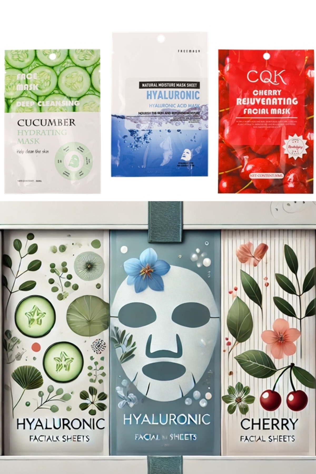 xolo Kuru Ciltler için Besleyici Nemlendirici Kağıt Yüz Maskeleri