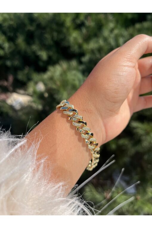 Genel Markalar Model Kalın Taşlı Çelik Altın Rengi Bileklik B Kalite