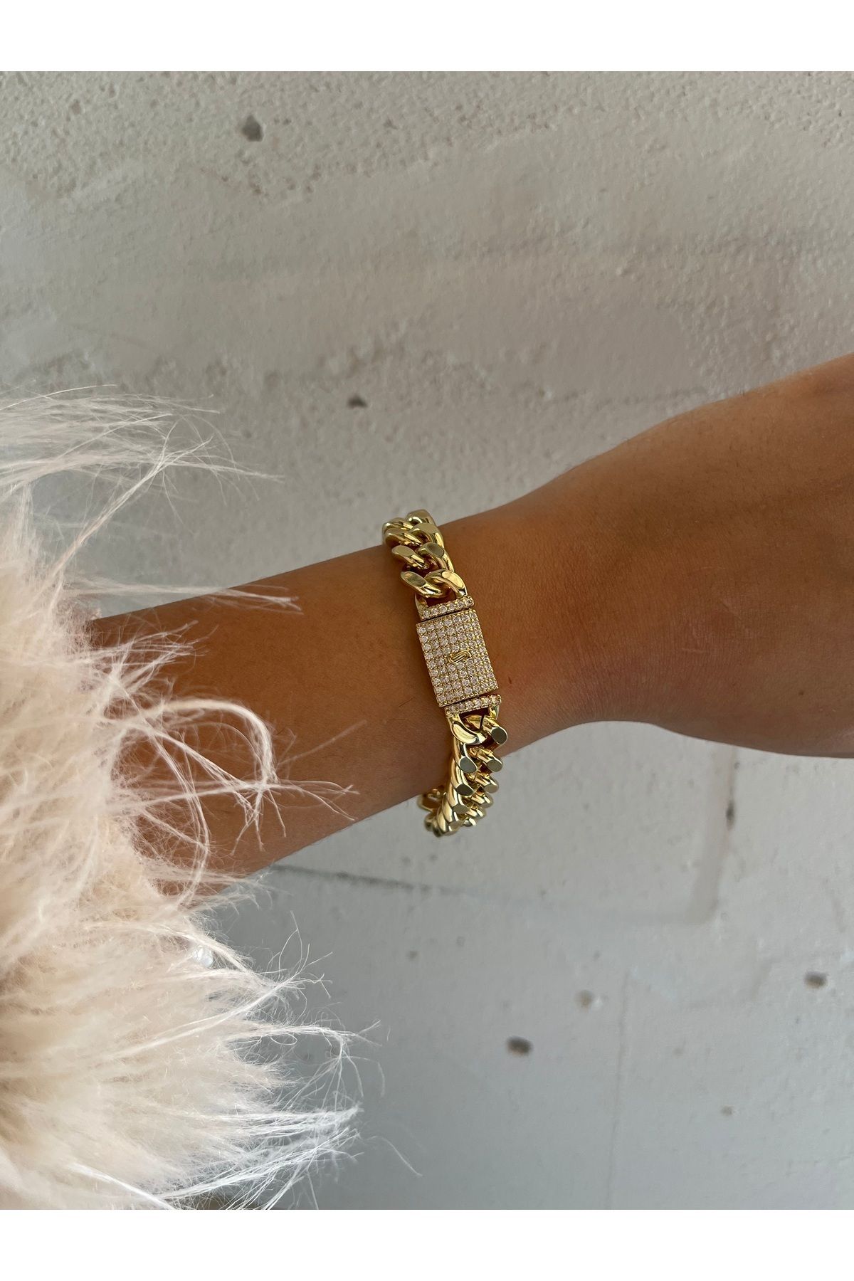 Genel Markalar Model Kalın Taşlı Çelik Altın Rengi Bileklik B Kalite