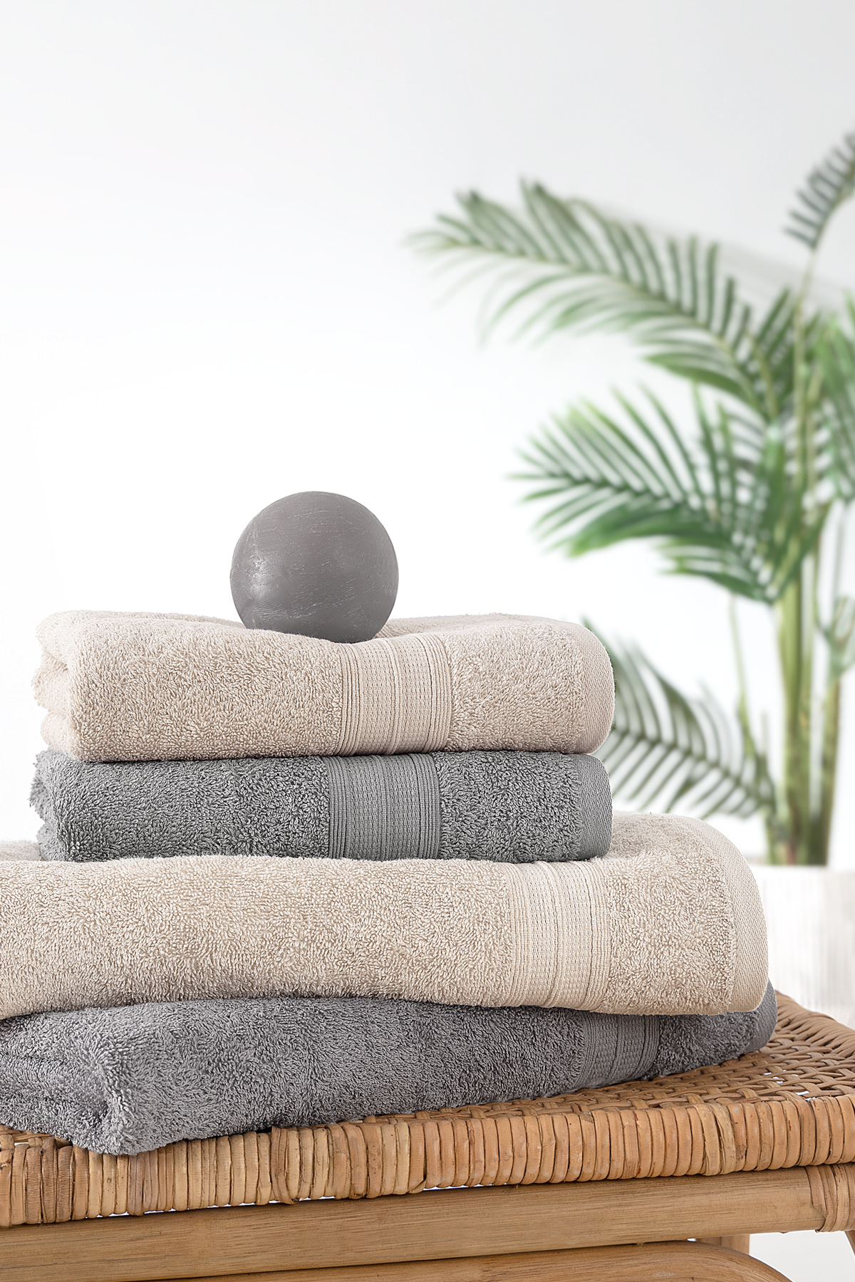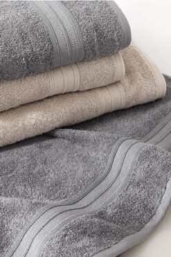 Yataş Angelina 4’lü Banyo Havlu Seti (50×90 cm/70×140 cm) – Bej / Gri