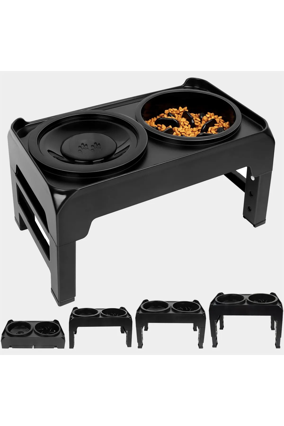 YENİTECH Ayarlanabilir Yükseltilebilir Köpek Kedi Mama Kabı Yavaş Yeme ve Sıçrama Önleyici Su Kabı 2’li Set