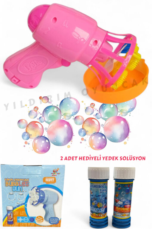 YILDIRIM OYUNCAK Çok Delikli Pilli Köpük Atan Tabanca Oyuncağı 2 Adet Yedek Solüsyon Hediyeli – Baloncuk Makinesi