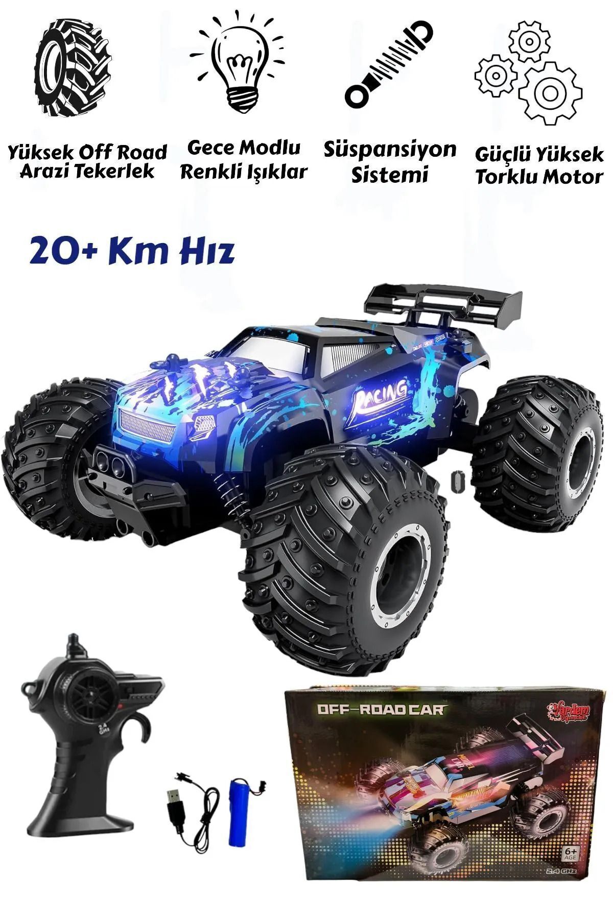 YILDIRIM OYUNCAK Uzaktan Kumandalı Araba Full Fonksiyon Şarjlı 22cm Işıklı Drift 4x4 20 Km Hız Yapan Off Road Jip ürünü ucuz fiyat, hızlı kargo ve kredi kartına 12 ay taksit imkanı ile hemen sitemizden sipariş verin.