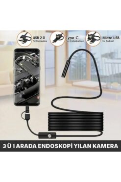 yoosee 2mt Çift Lens ve Işıklı Usb Girişli Çift Kameralı Endeskop Boroskop Sert Kablo Yılan Kamera